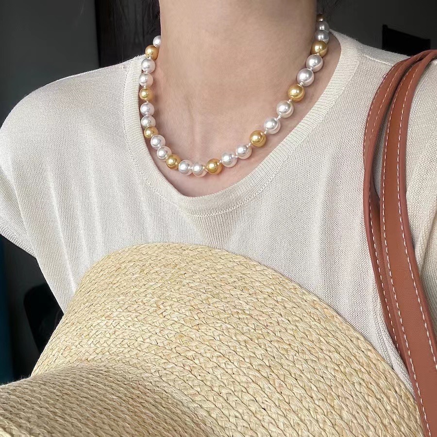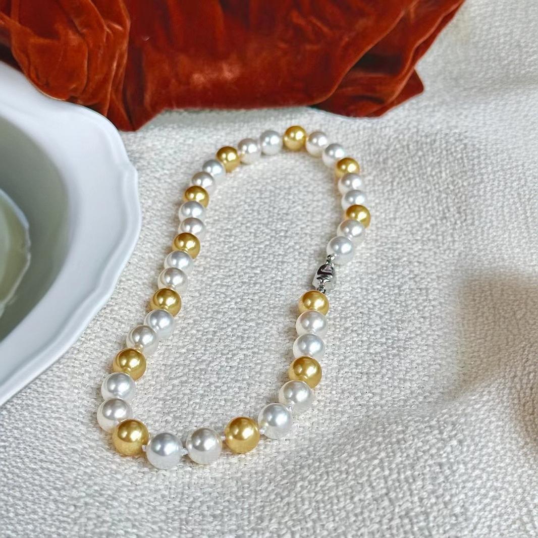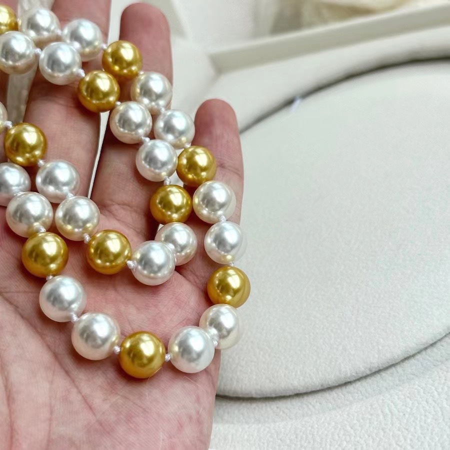 Colares de contas de vidro, Pérola de vidro, cromado de cor dourada, joias de moda, Mais cores pare escolha, 9-10mm, vendido por Strand