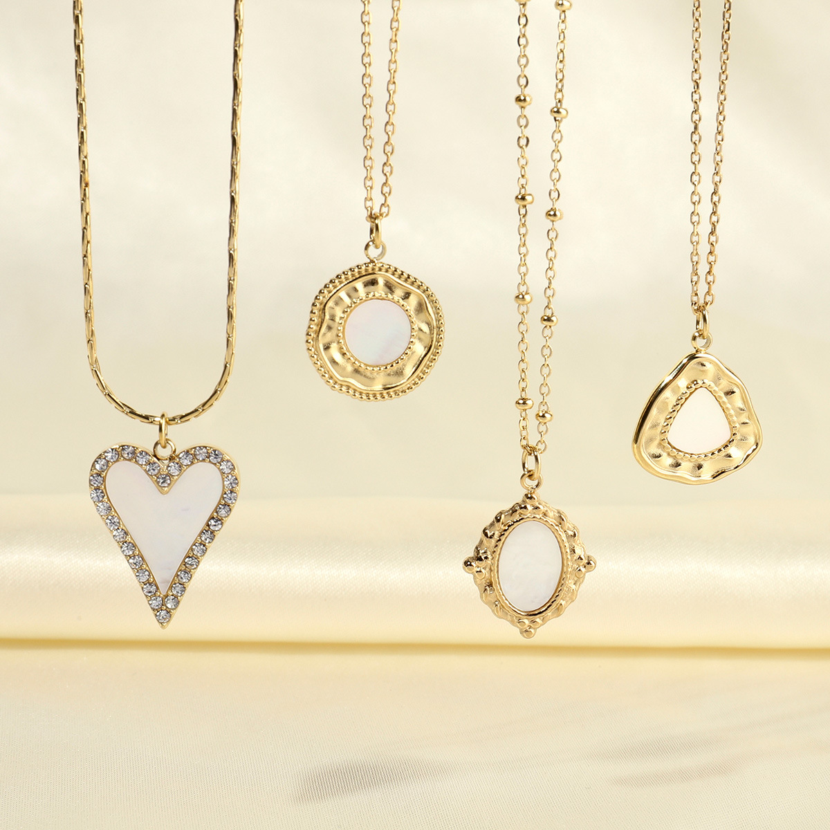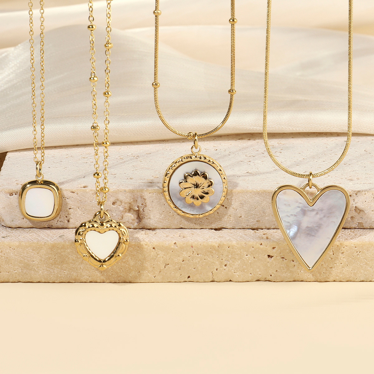 Colar de jóias de aço inoxidável, Aço inoxidável 304, with concha branca, cromado de cor dourada, joias de moda & materiais diferentes para a escolha & para mulher, Mais cores pare escolha, comprimento Aprox 45 cm, vendido por PC