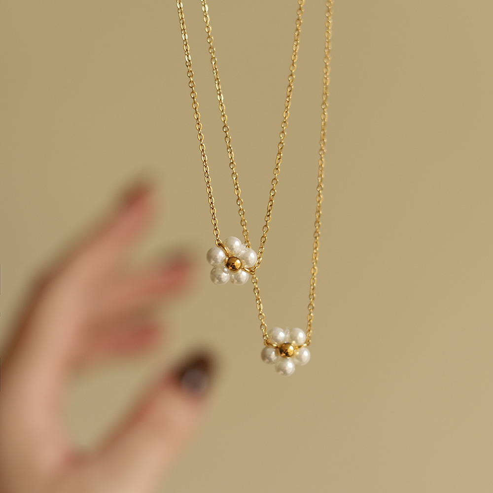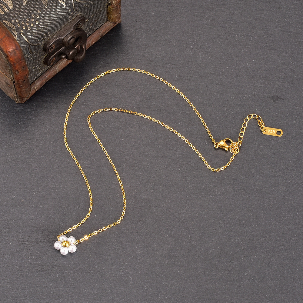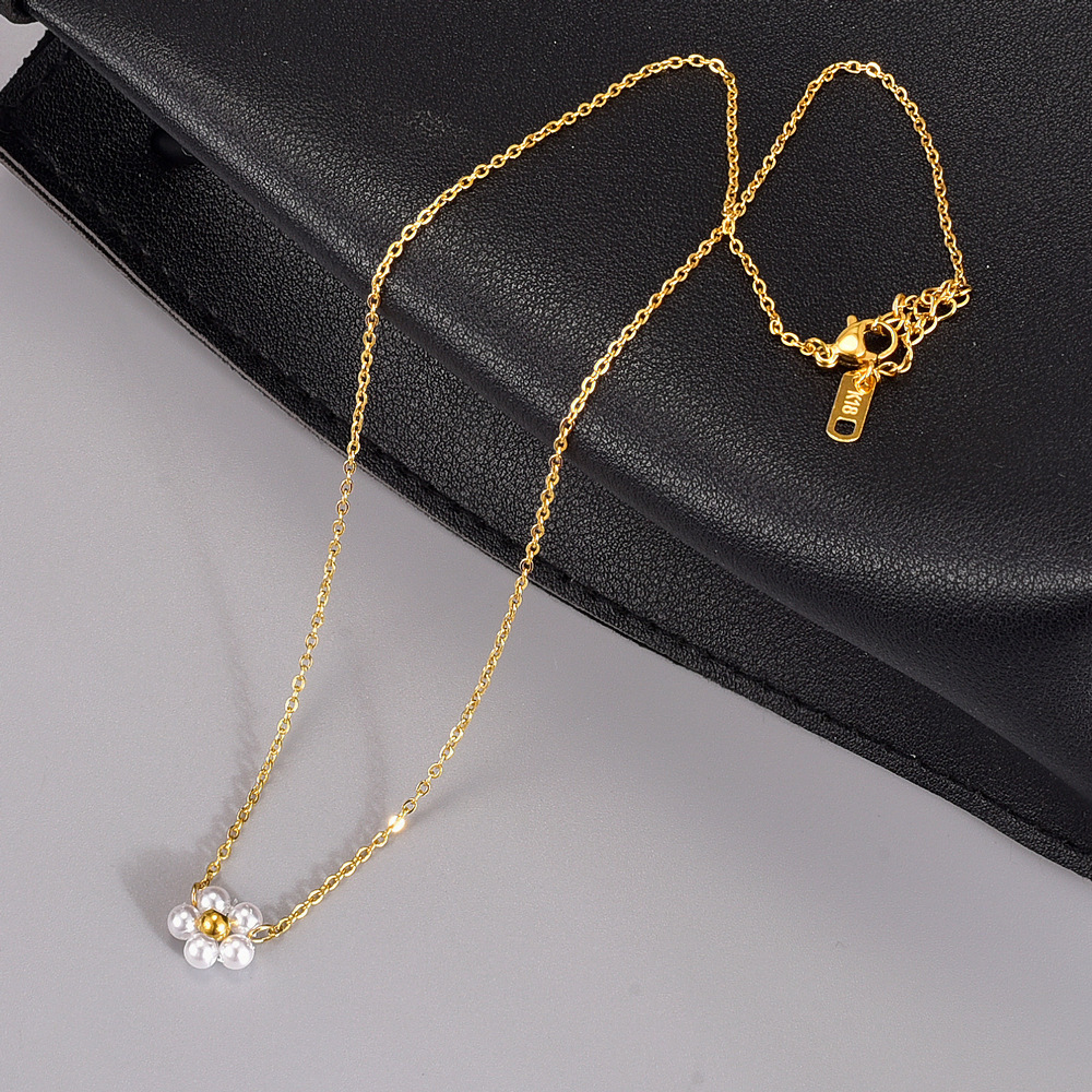 Colar de jóias de aço inoxidável, Aço inoxidável 304, with Pérola de vidro, para mulher, comprimento 41-50 cm, vendido por PC