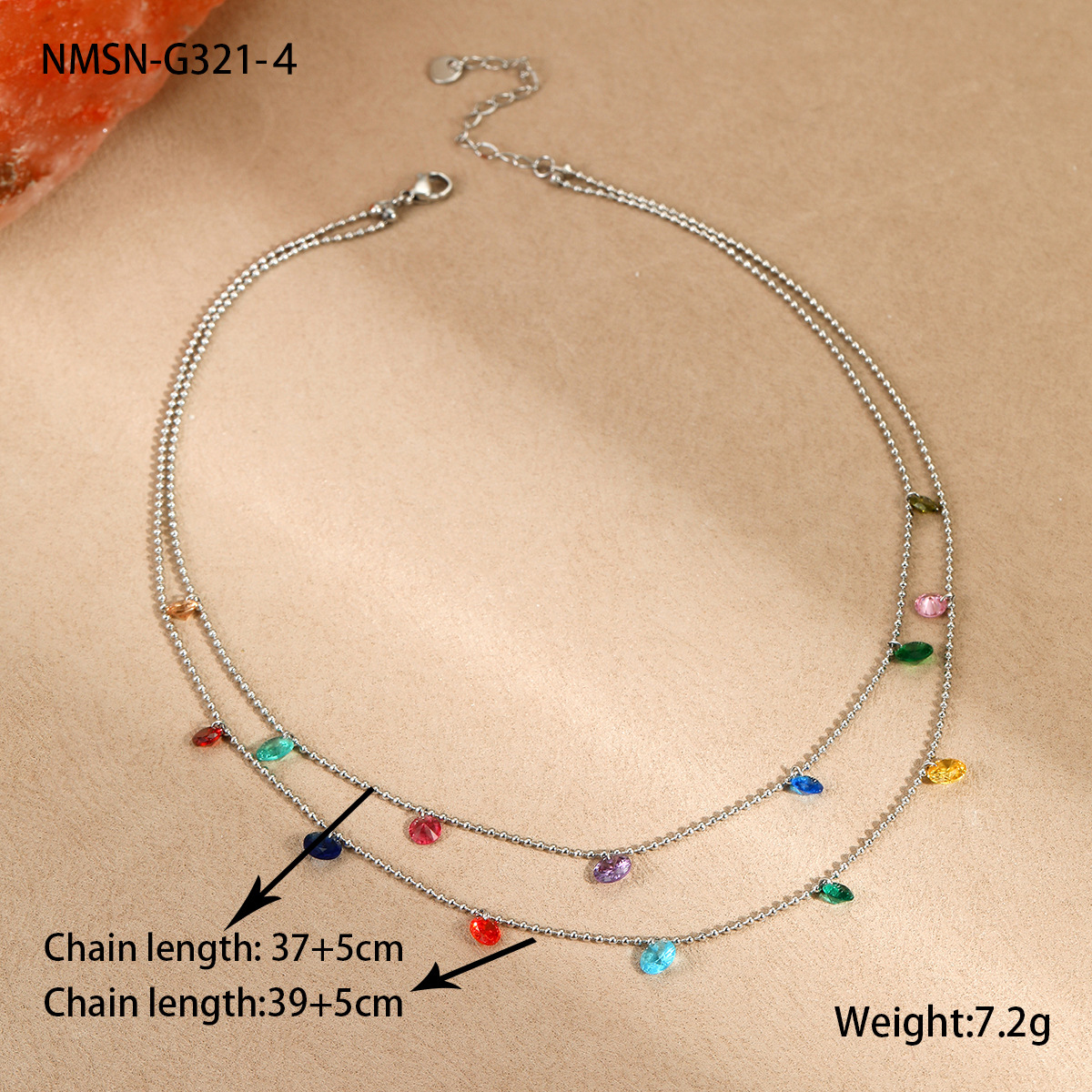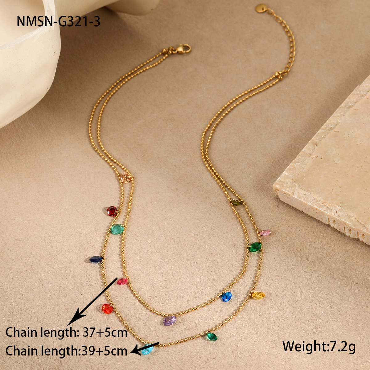 Colar de jóias de aço inoxidável, Aço inoxidável 304, with zircone em forma de cubo, banhado, Camada Dupla & joias de moda & para mulher, Mais cores pare escolha, vendido por PC