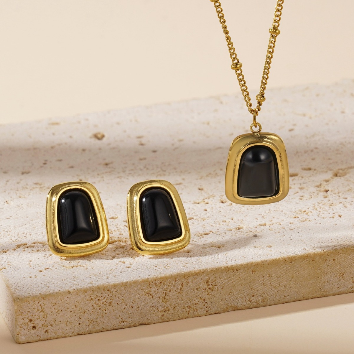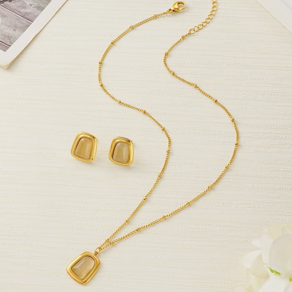 1:X641 White Cat's Eye Necklace Gold2:E104 white cat eye earrings gold3:X641 black cat eye necklace gold4:E104 black cat eye earrings gold5:X641 e104 white6:X641 e104 black