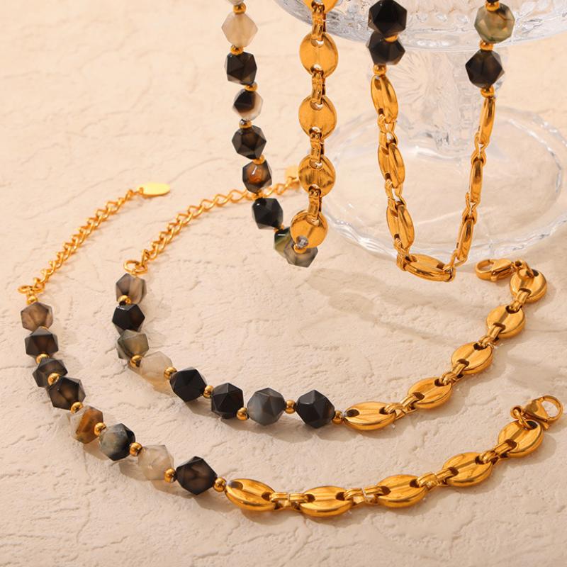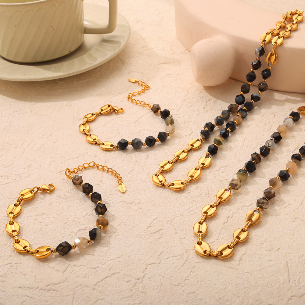 Conjuntos de jóias de aço inoxidável, Aço inoxidável 304, with Pedra natural, 18K banhado a ouro, joias de moda & Vario tipos a sua escolha & para mulher, vendido por PC
