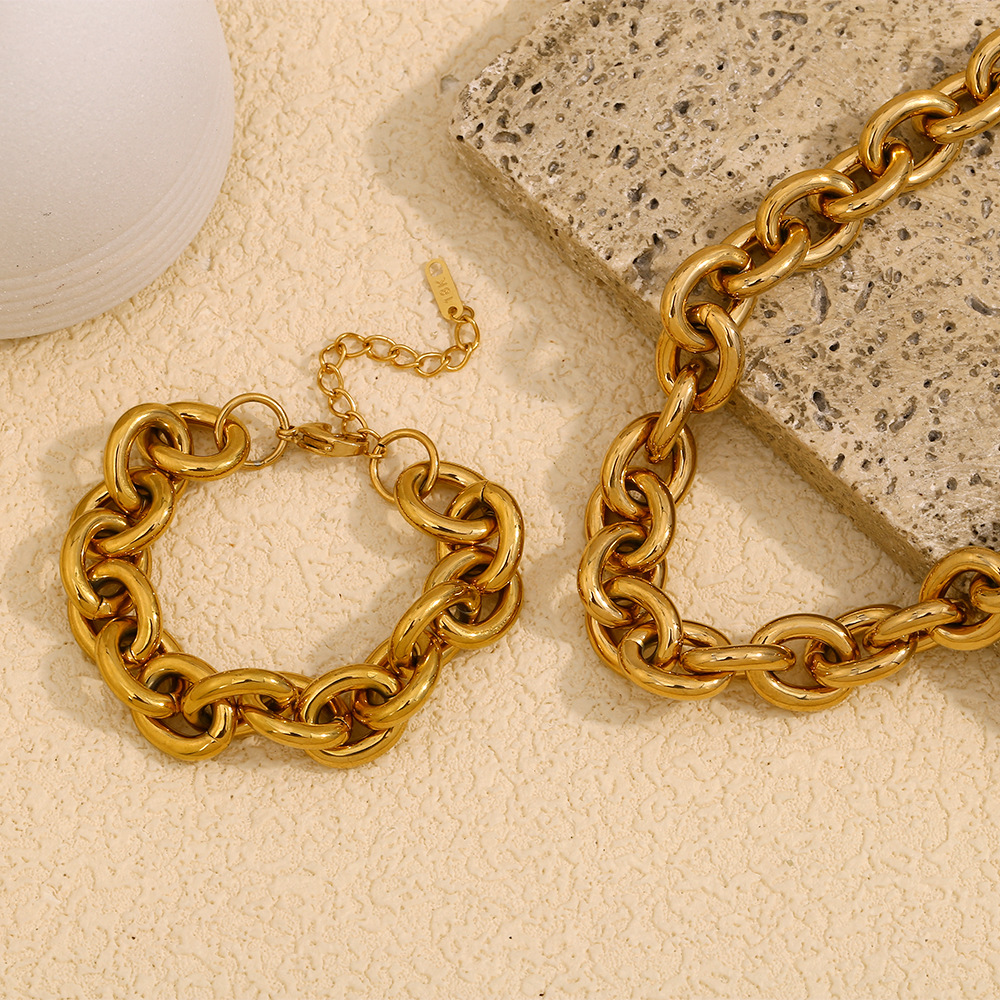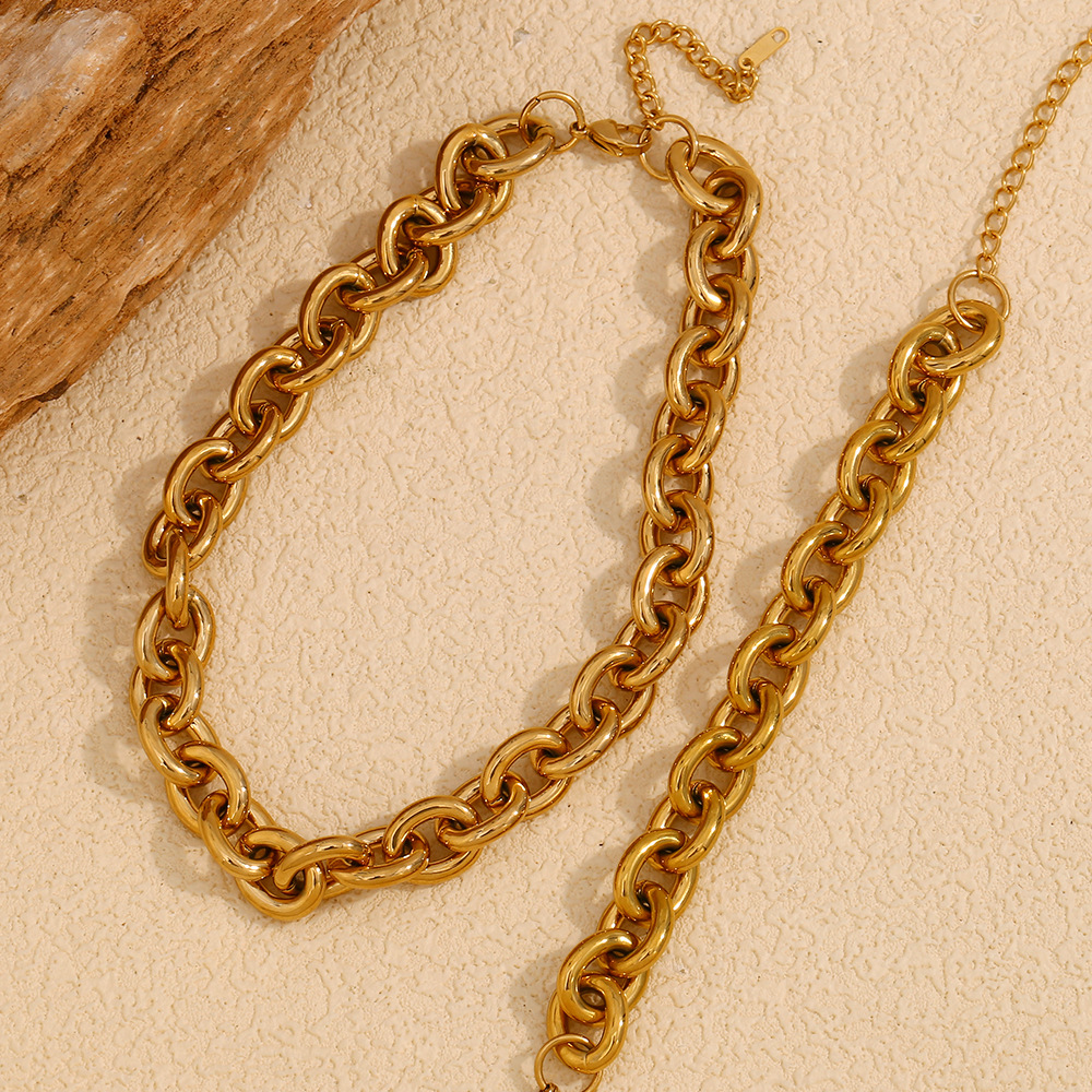 Conjuntos de jóias de aço inoxidável, colar de corrente camisola & Brincos, Aço inoxidável 304, cromado de cor dourada, joias de moda, Mais cores pare escolha, vendido por PC