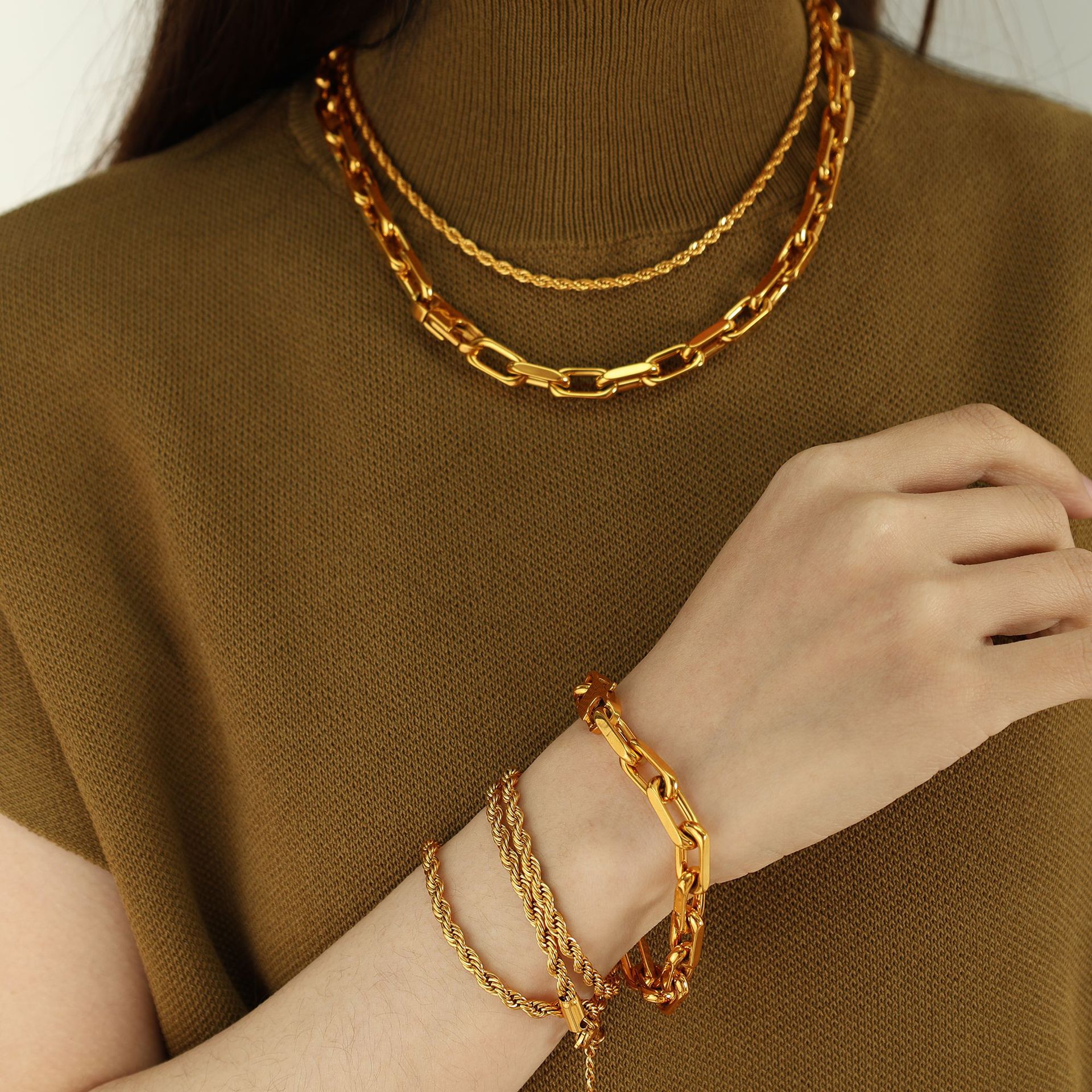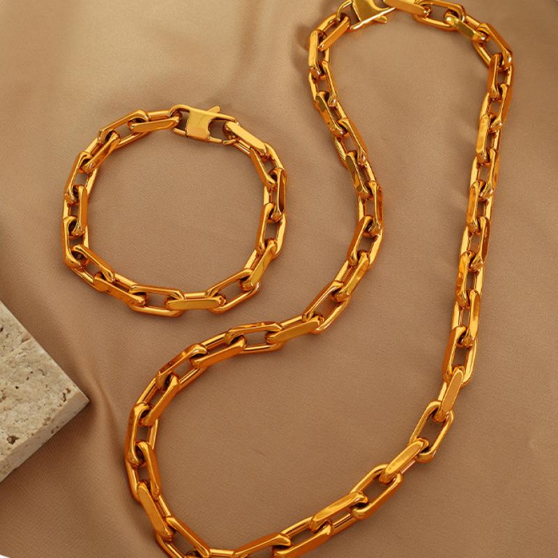 Conjuntos de jóias de aço inoxidável, colar de corrente camisola & Brincos, Aço inoxidável 304, cromado de cor dourada, joias de moda, Mais cores pare escolha, vendido por PC
