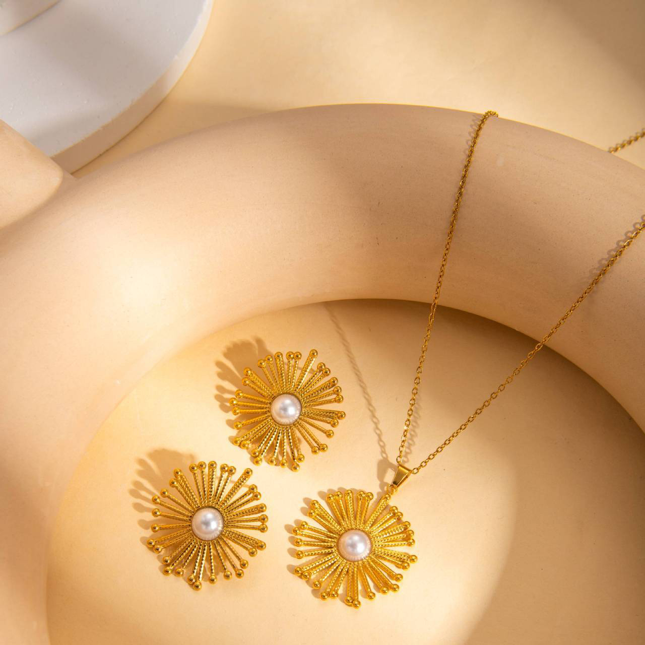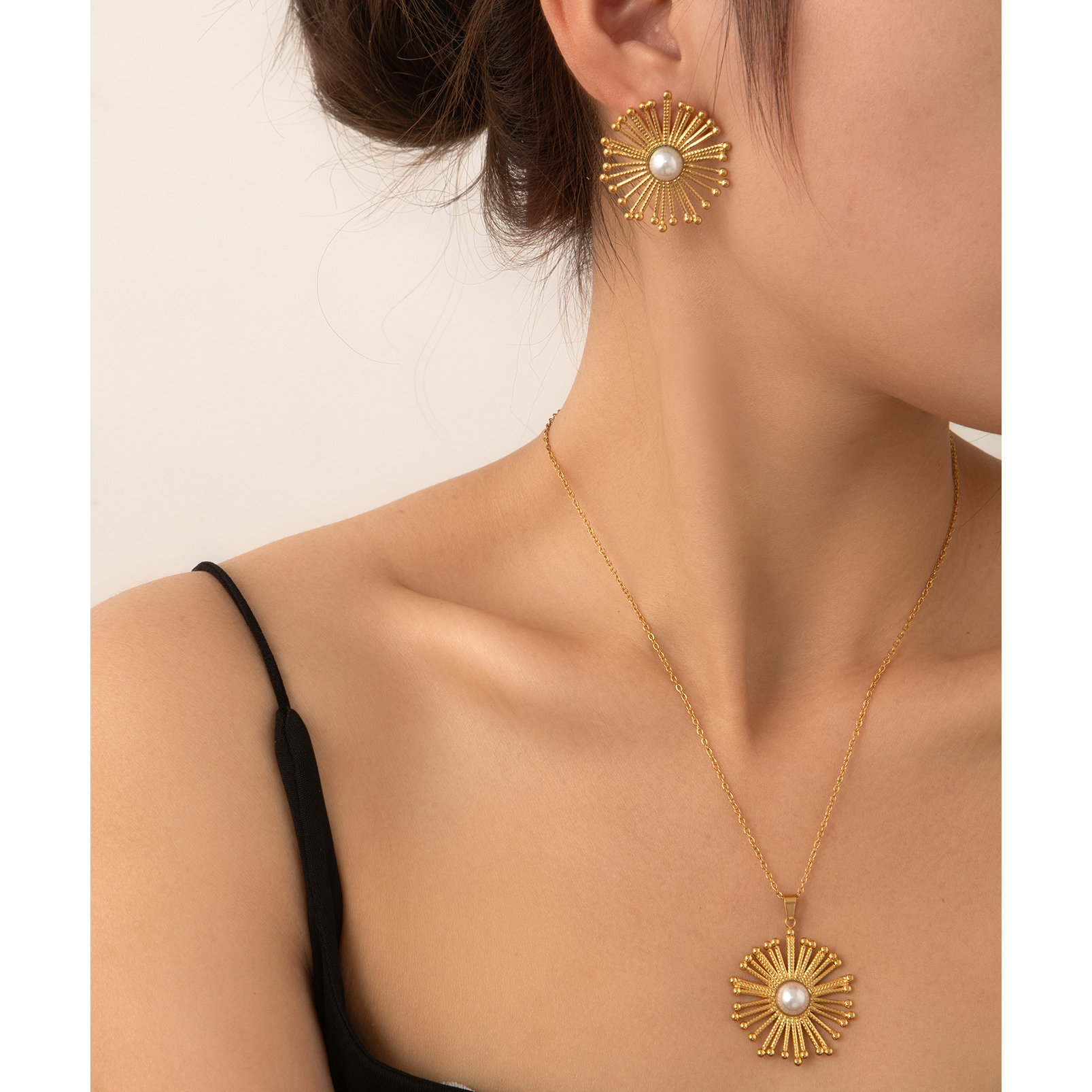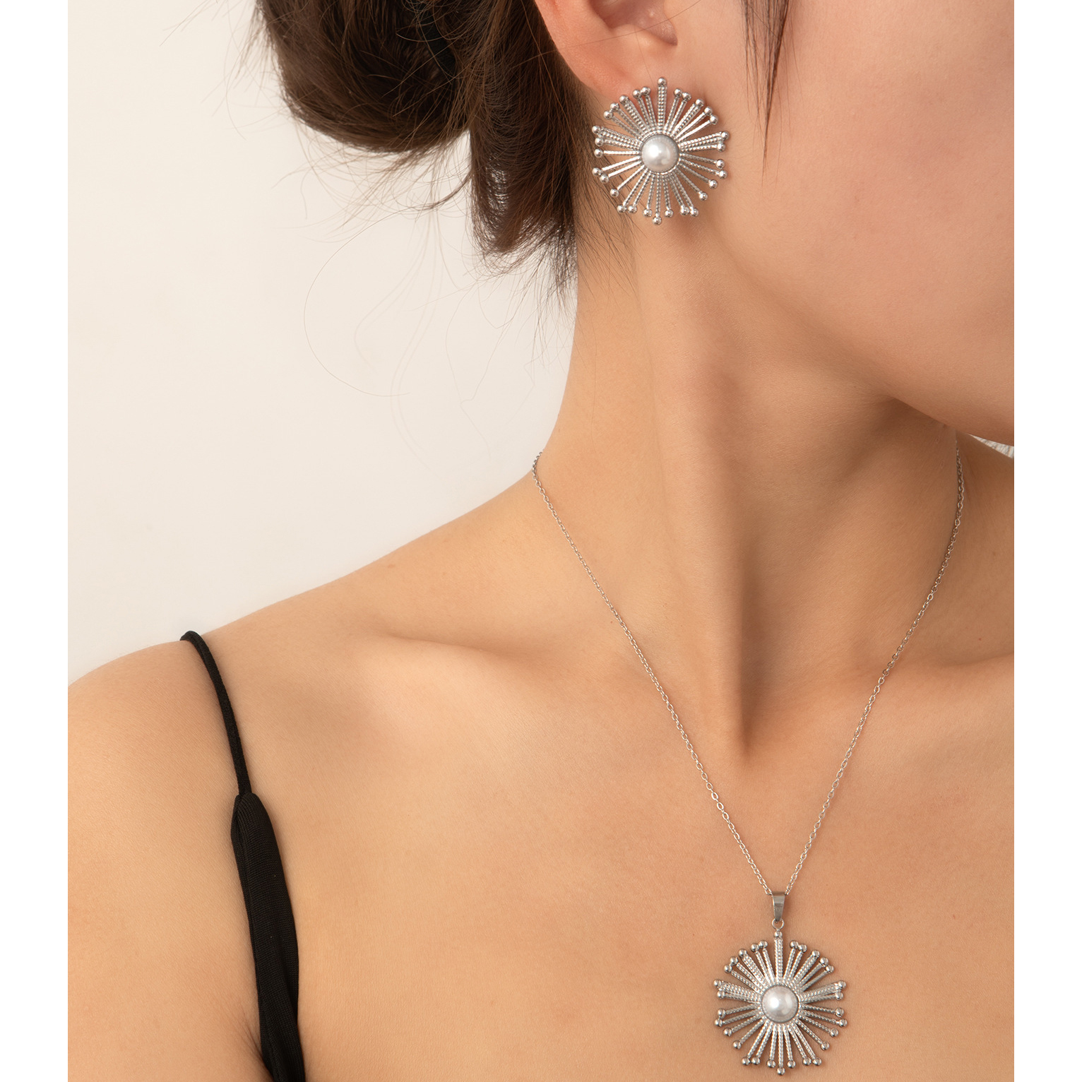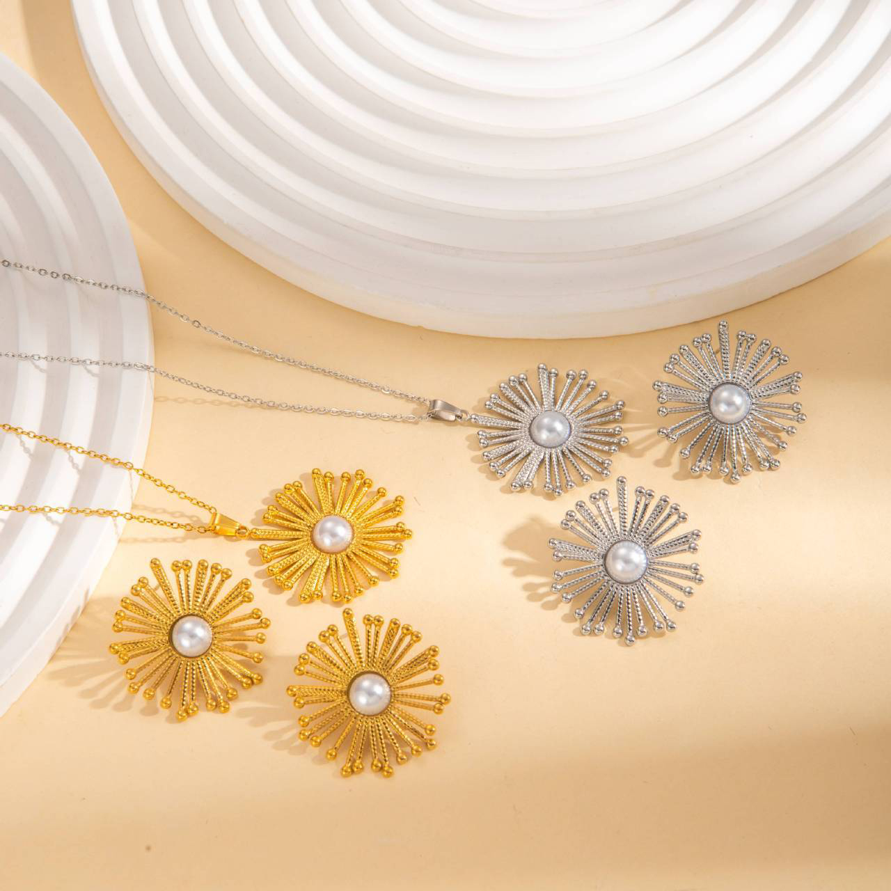 1:Gold sunflower necklace2:Gold sunflower earrings3:Set 14:Silver sunflower necklace5:Silver sunflower earrings6:Set 2