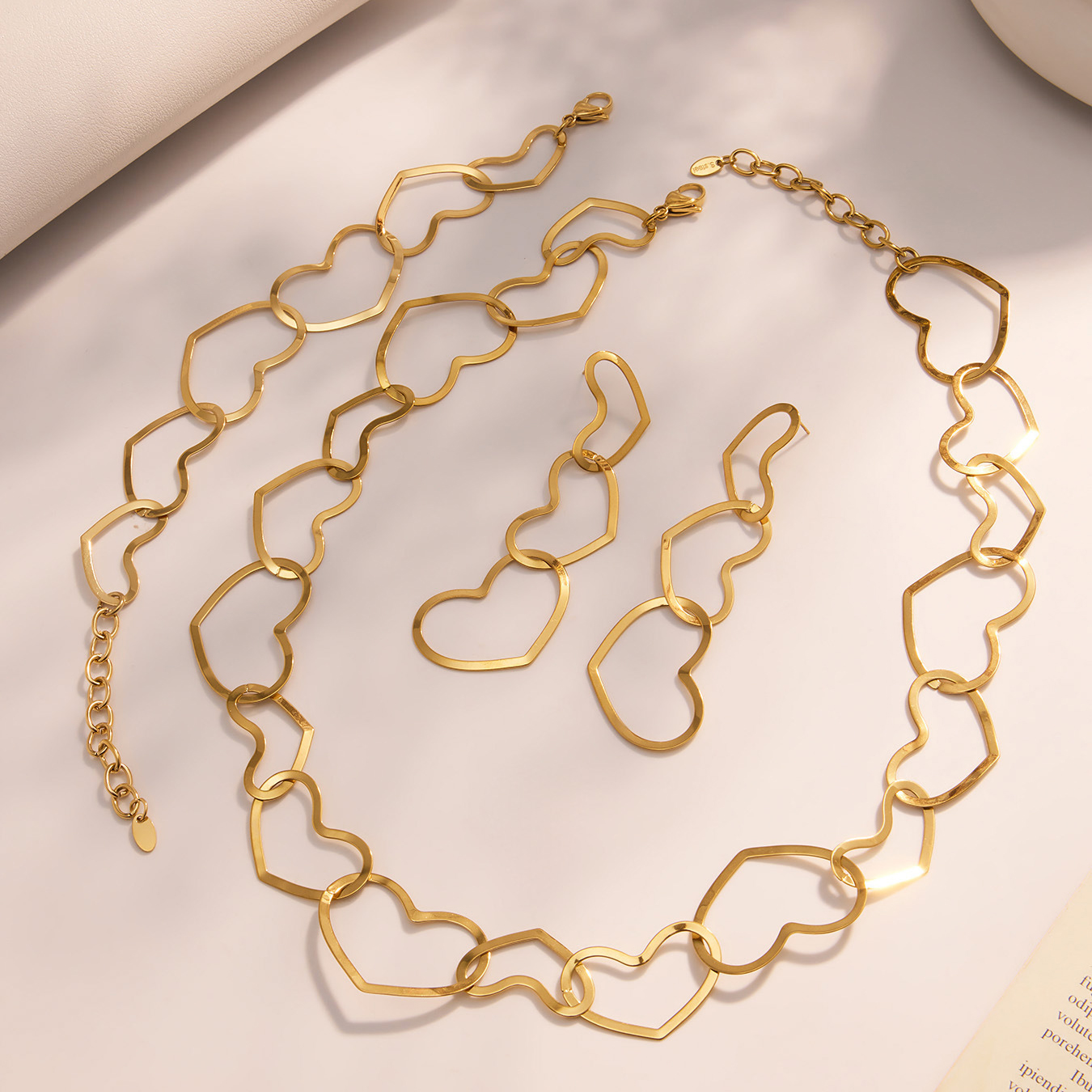 Conjuntos de jóias de aço inoxidável, colar de corrente camisola & Brincos, Aço inoxidável 304, cromado de cor dourada, joias de moda, Mais cores pare escolha, vendido por PC