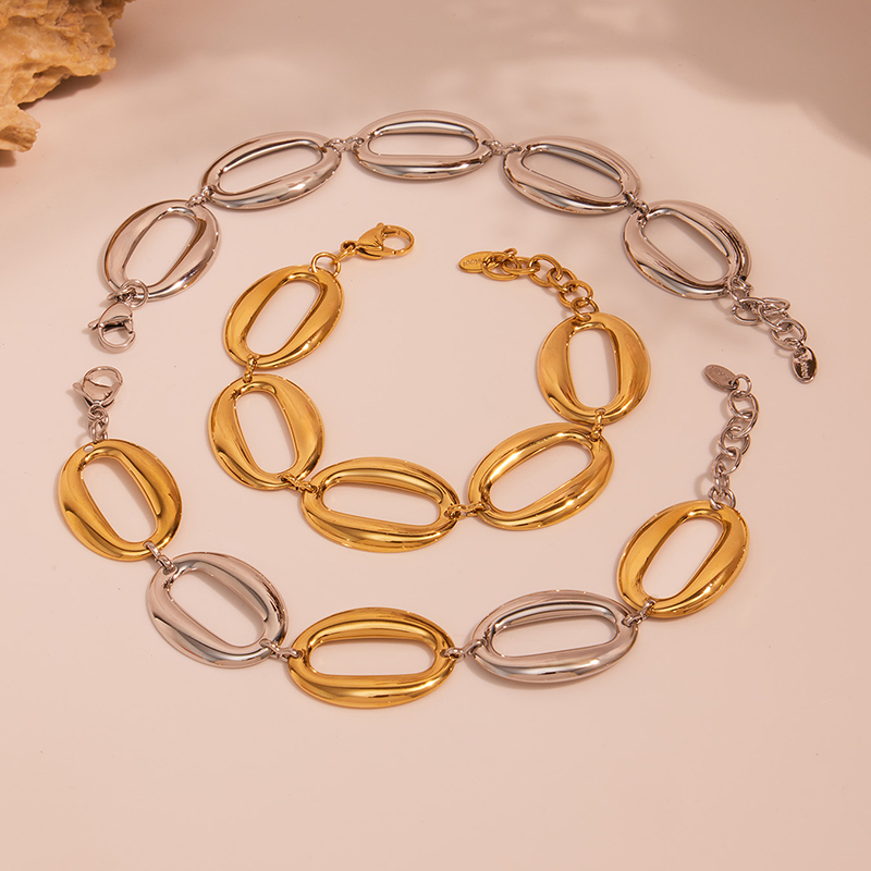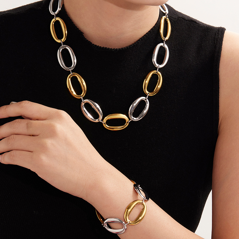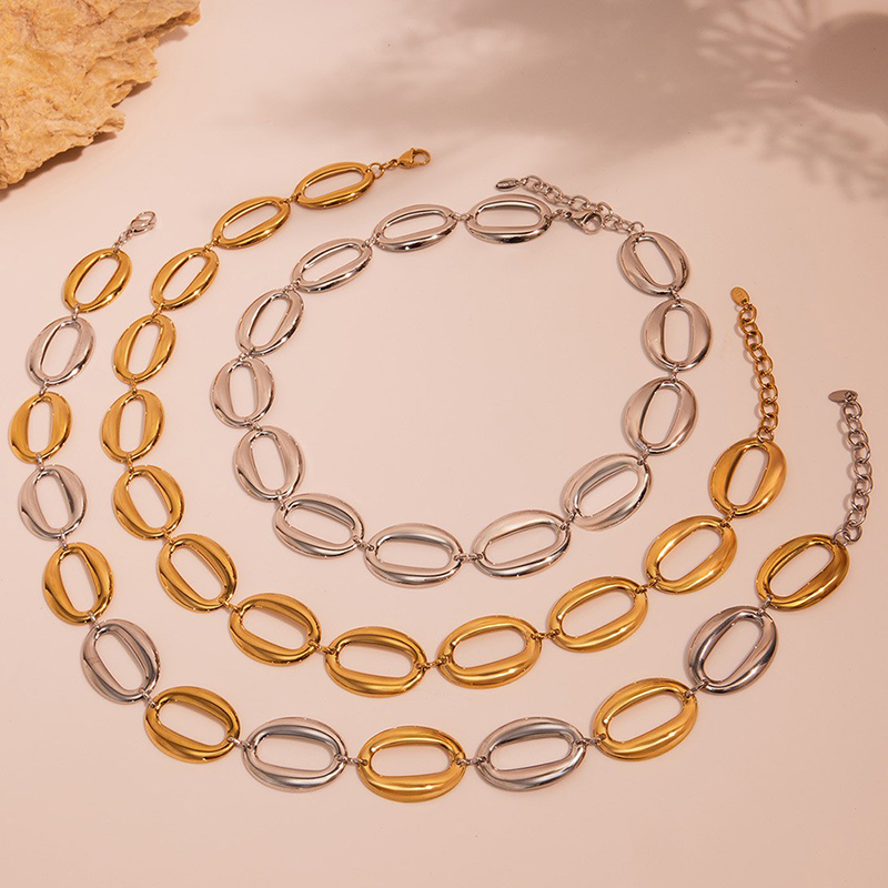 1:Golden necklace2:Steel-colored necklace3:Interlaced gold necklace4:Golden bracelet5:Steel-colored bracelet6:Interlaced gold bracelet