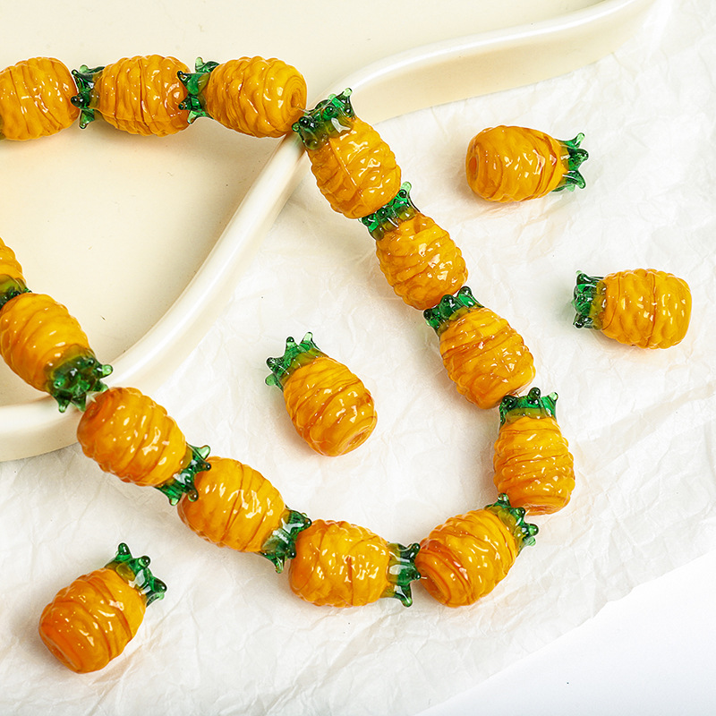 Contas de vidro de moda, Abacaxi, DIY, 15x20mm, Buraco:Aprox 2mm, vendido por PC
