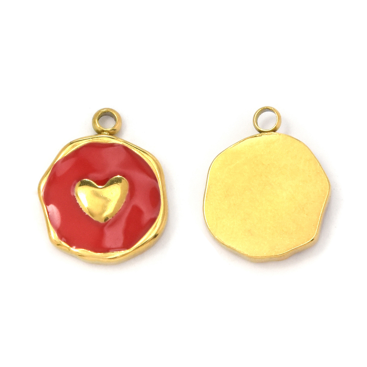 Coração de aço inoxidável pingentes, Aço inoxidável 304, cromado de cor dourada, DIY & esmalte, dourado, 10PCs/Bag, vendido por Bag