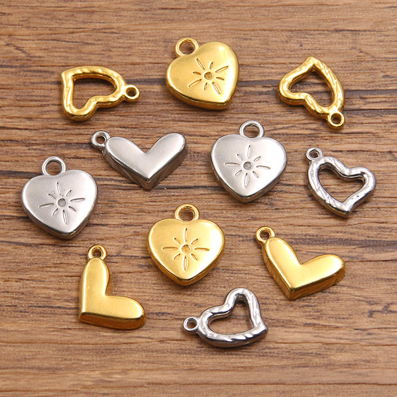 Coração de aço inoxidável pingentes, Aço inoxidável 304, banhado, DIY, Mais cores pare escolha, 10PCs/Bag, vendido por Bag