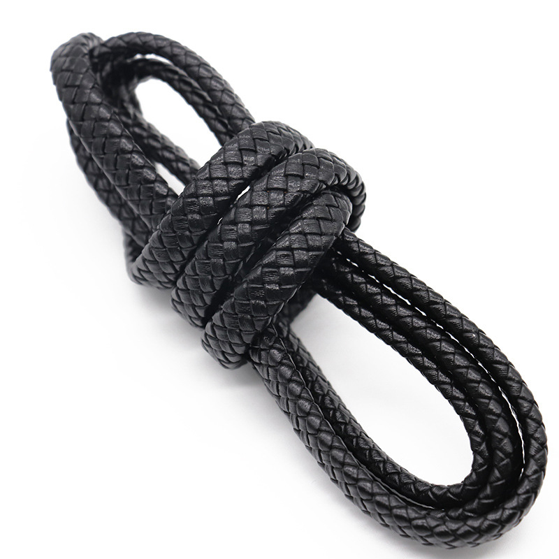 Cordão de couro, corda de Couro de vaca, Buda, DIY, preto, 8x5mm, vendido por m