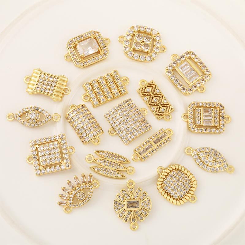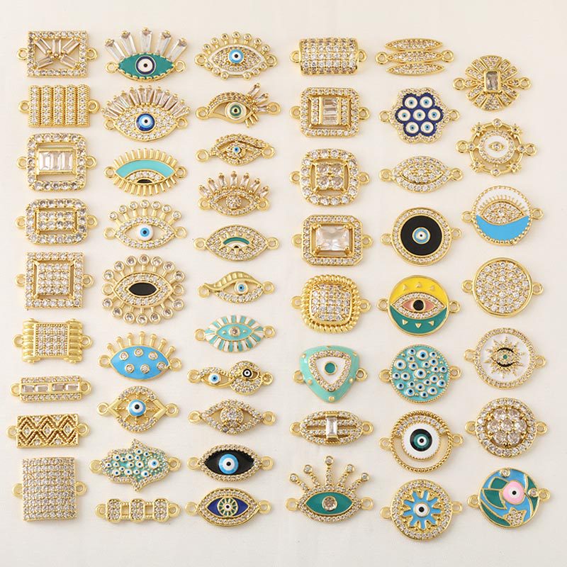 Cubic Zirconia Micro Pave Latão Connector, cobre, cromado de cor dourada, DIY & Vario tipos a sua escolha & esmalte & com strass, vendido por PC