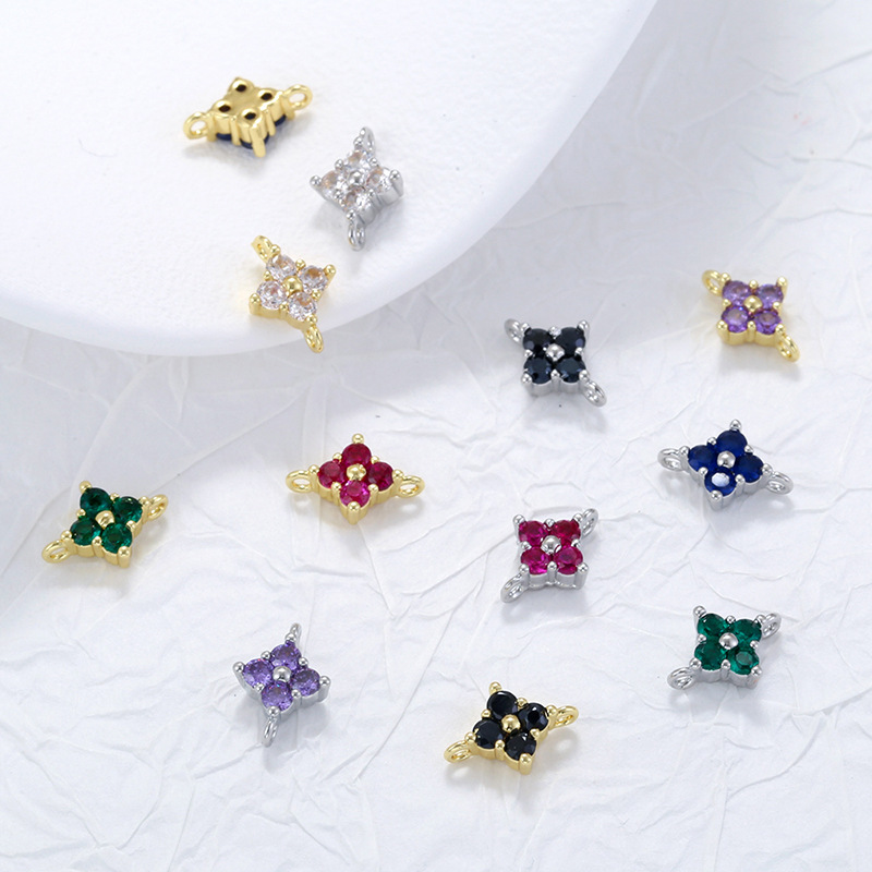 Cubic Zirconia Micro Pave Latão Connector, cobre, Trevo de quatro folhas, banhado, DIY & micro pavimento em zircônia cúbica, Mais cores pare escolha, 7x10mm, vendido por PC