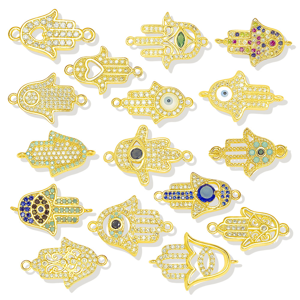 Cubic Zirconia Micro Pave Latão Connector, cobre, mão Hamsa, cromado de cor dourada, DIY & Vario tipos a sua escolha & micro pavimento em zircônia cúbica, vendido por PC