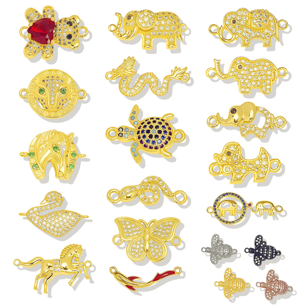 Cubic Zirconia Micro Pave Latão Connector, cobre, Animal, cromado de cor dourada, DIY & Vario tipos a sua escolha & micro pavimento em zircônia cúbica, vendido por PC