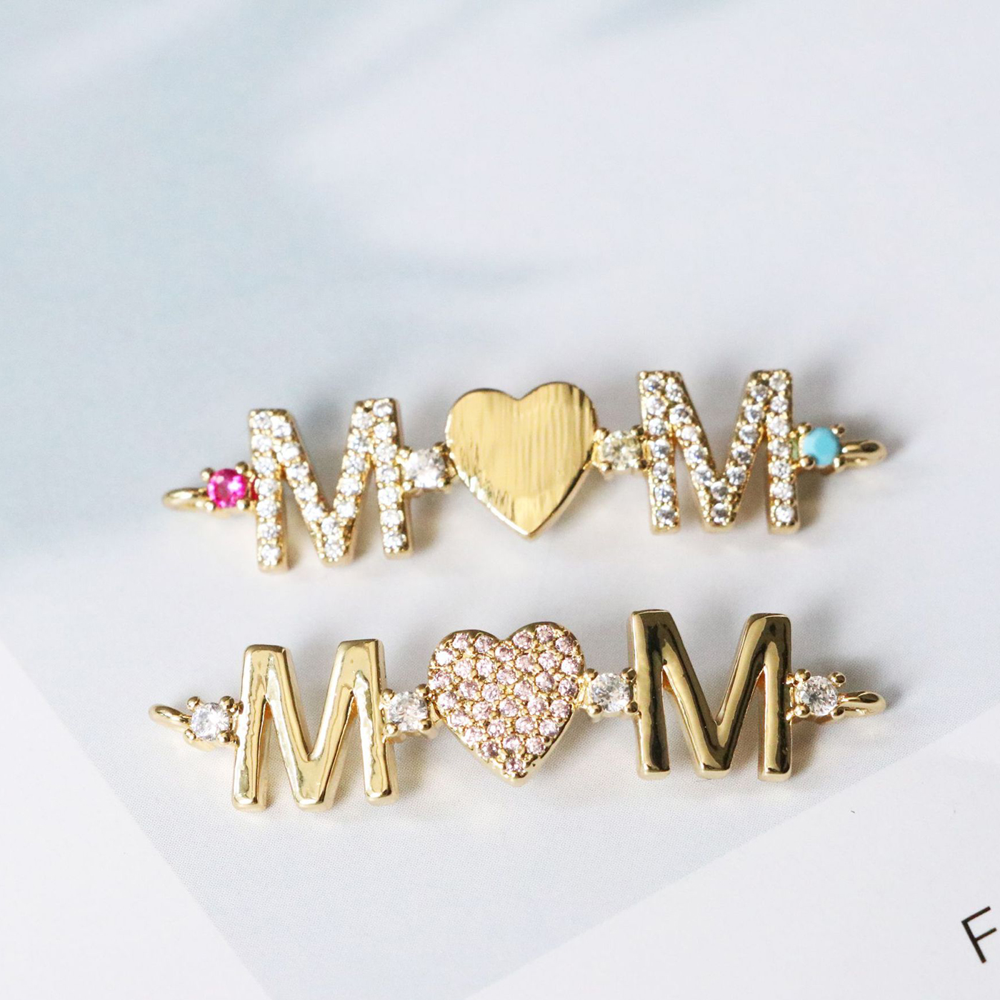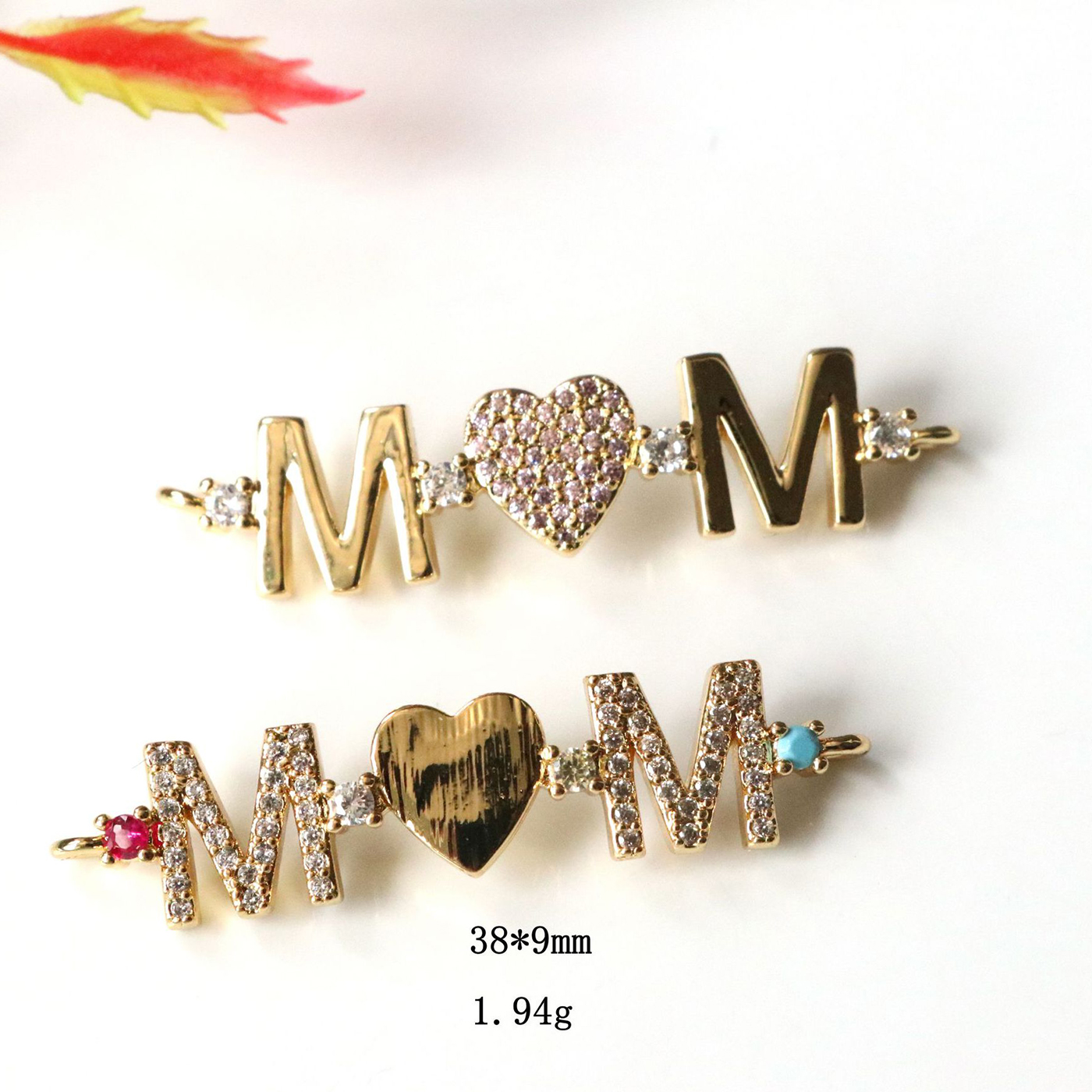 Cubic Zirconia Micro Pave Latão Connector, cobre, Letra do Alfabeto, cromado de cor dourada, DIY & micro pavimento em zircônia cúbica, Mais cores pare escolha, 38x9mm, vendido por PC