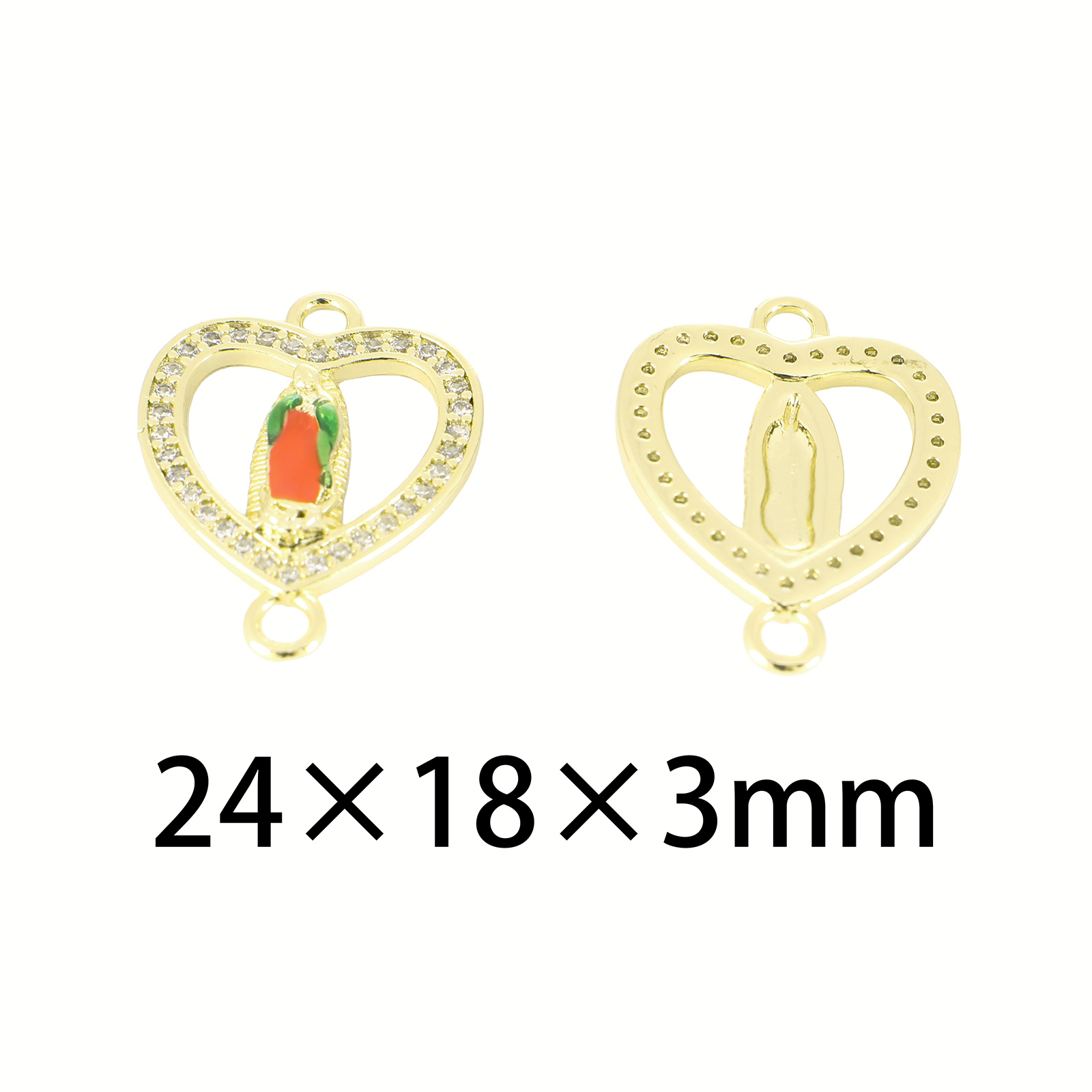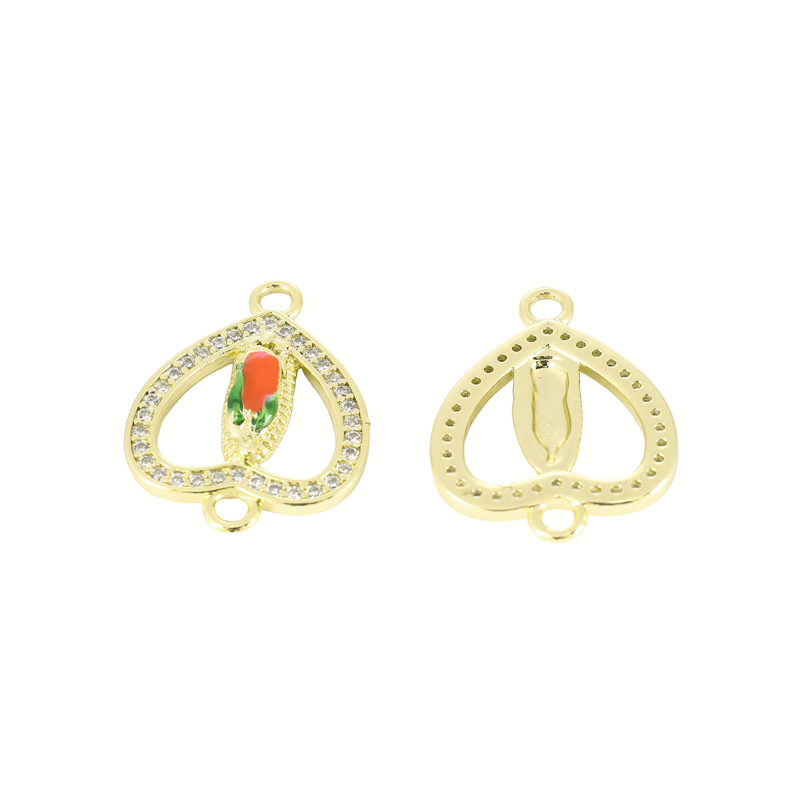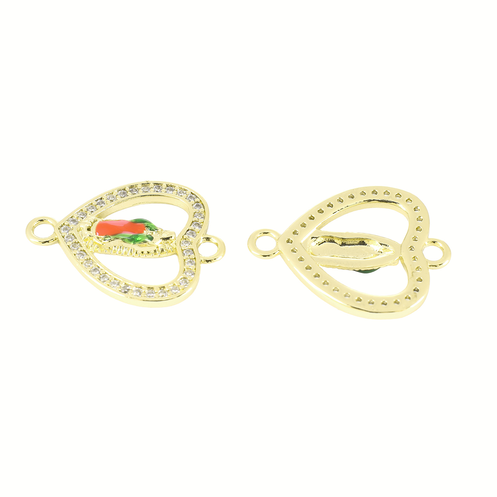 Cubic Zirconia Micro Pave Latão Connector, cobre, Coração, cromado de cor dourada, DIY & micro pavimento em zircônia cúbica & esmalte & vazio, 24x18x3mm, vendido por PC