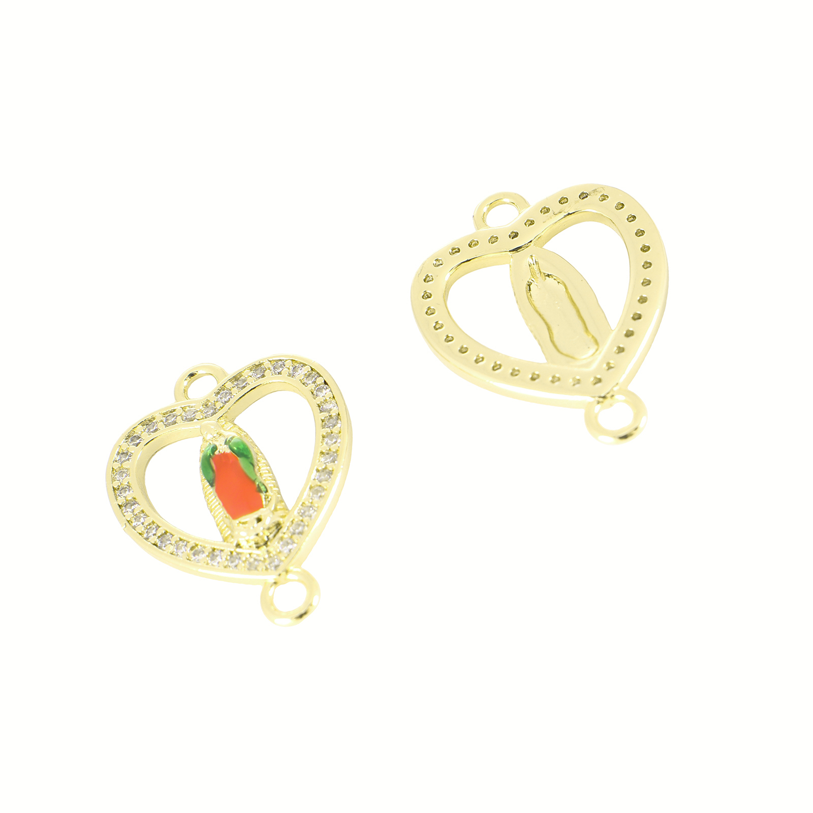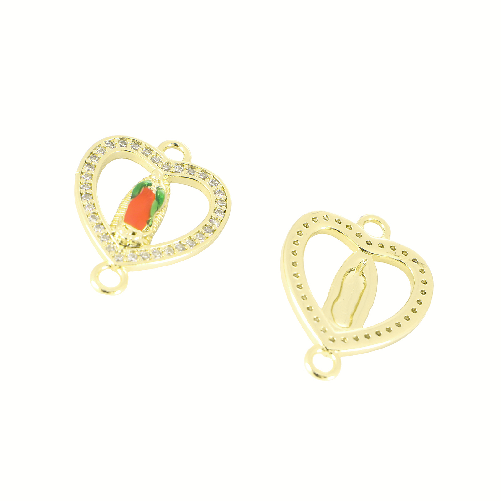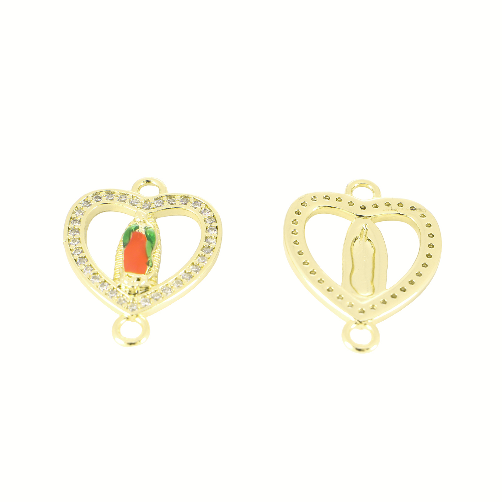 Cubic Zirconia Micro Pave Latão Connector, cobre, Coração, cromado de cor dourada, DIY & micro pavimento em zircônia cúbica & esmalte & vazio, 24x18x3mm, vendido por PC