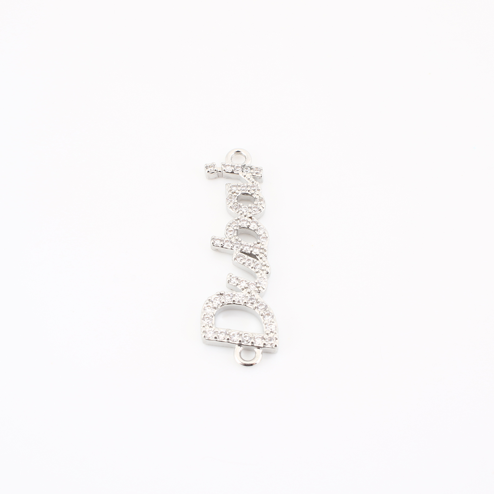 Cubic Zirconia Micro Pave Latão Connector, cobre, Letra do Alfabeto, banhado, DIY & micro pavimento em zircônia cúbica, 28x9x2mm, vendido por PC