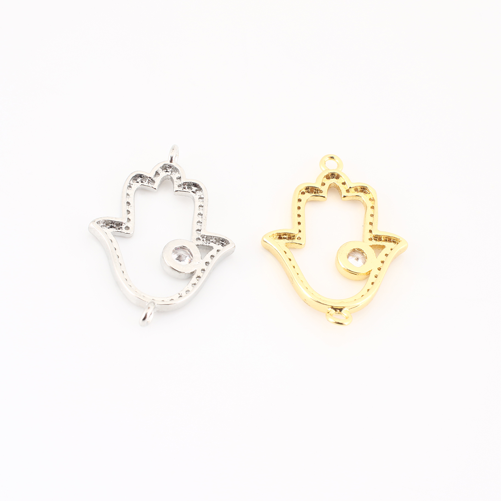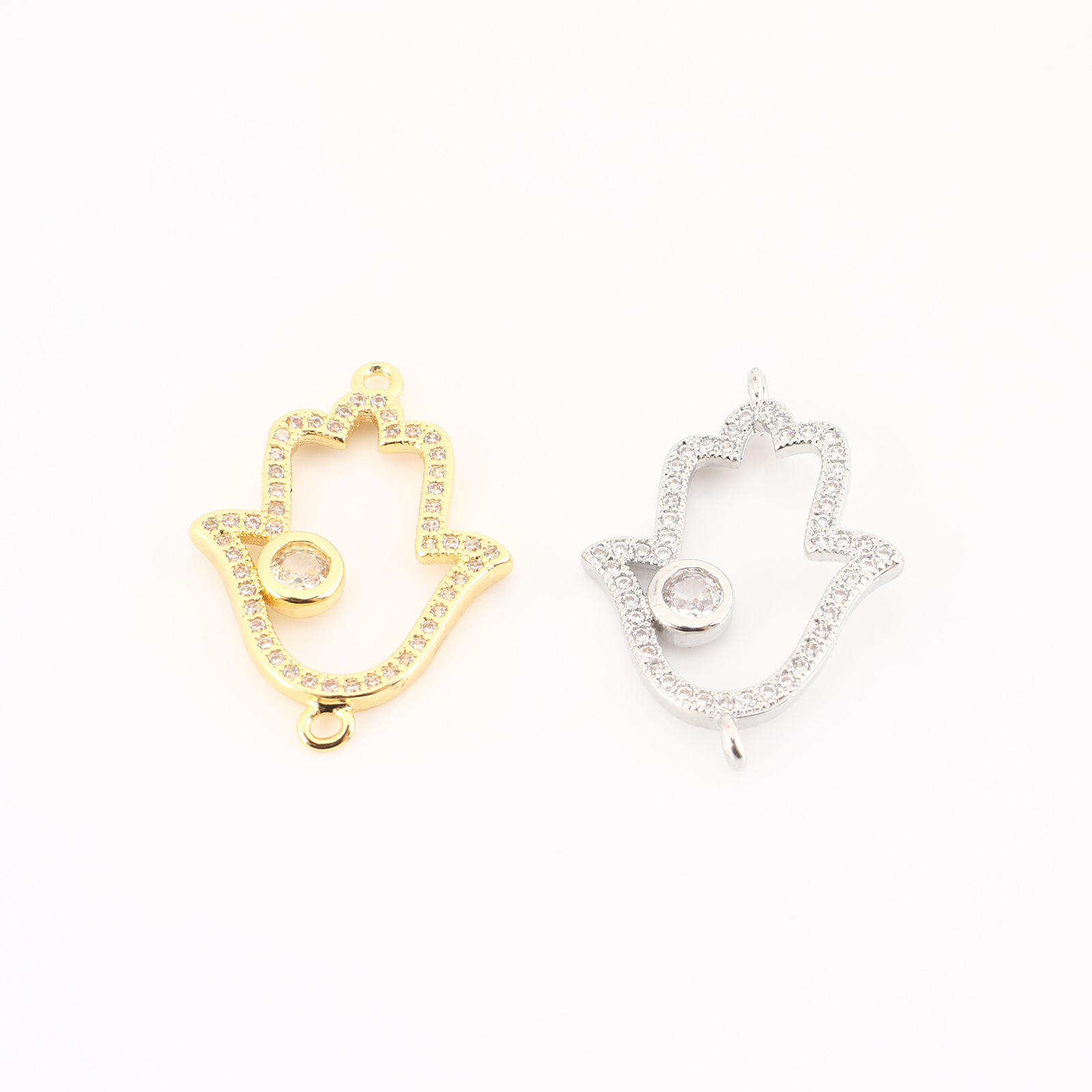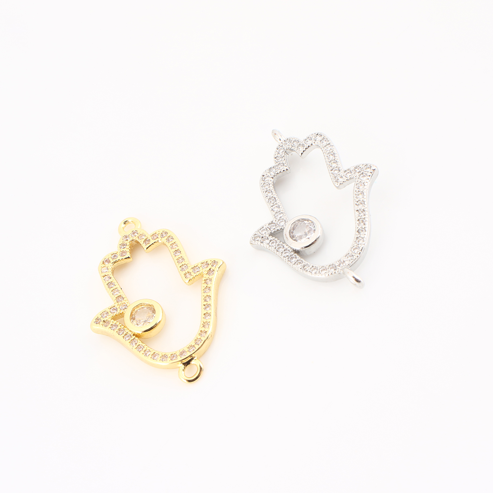 Cubic Zirconia Micro Pave Latão Connector, cobre, mão Hamsa, banhado, DIY & micro pavimento em zircônia cúbica & vazio, Mais cores pare escolha, 25x17x2mm, vendido por PC