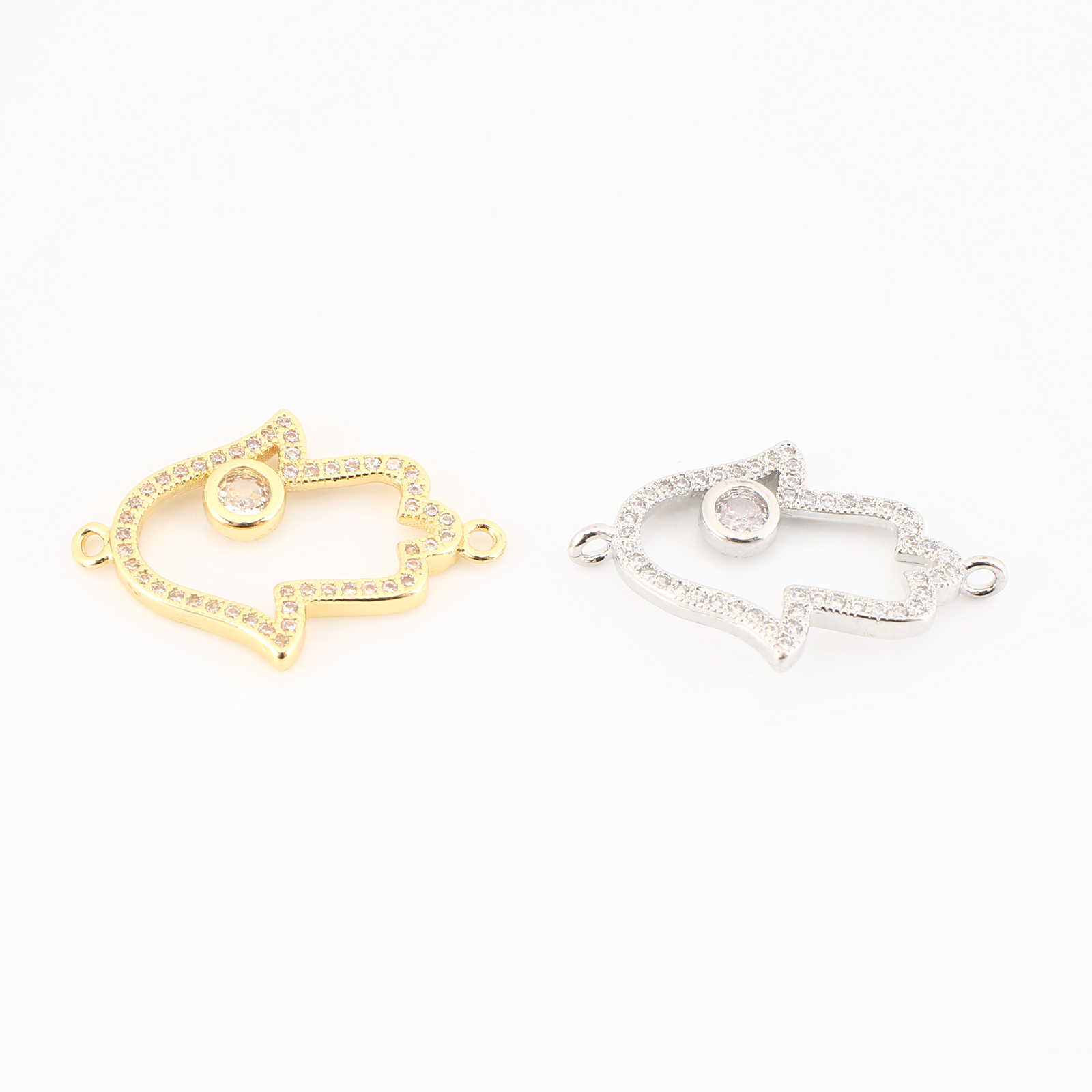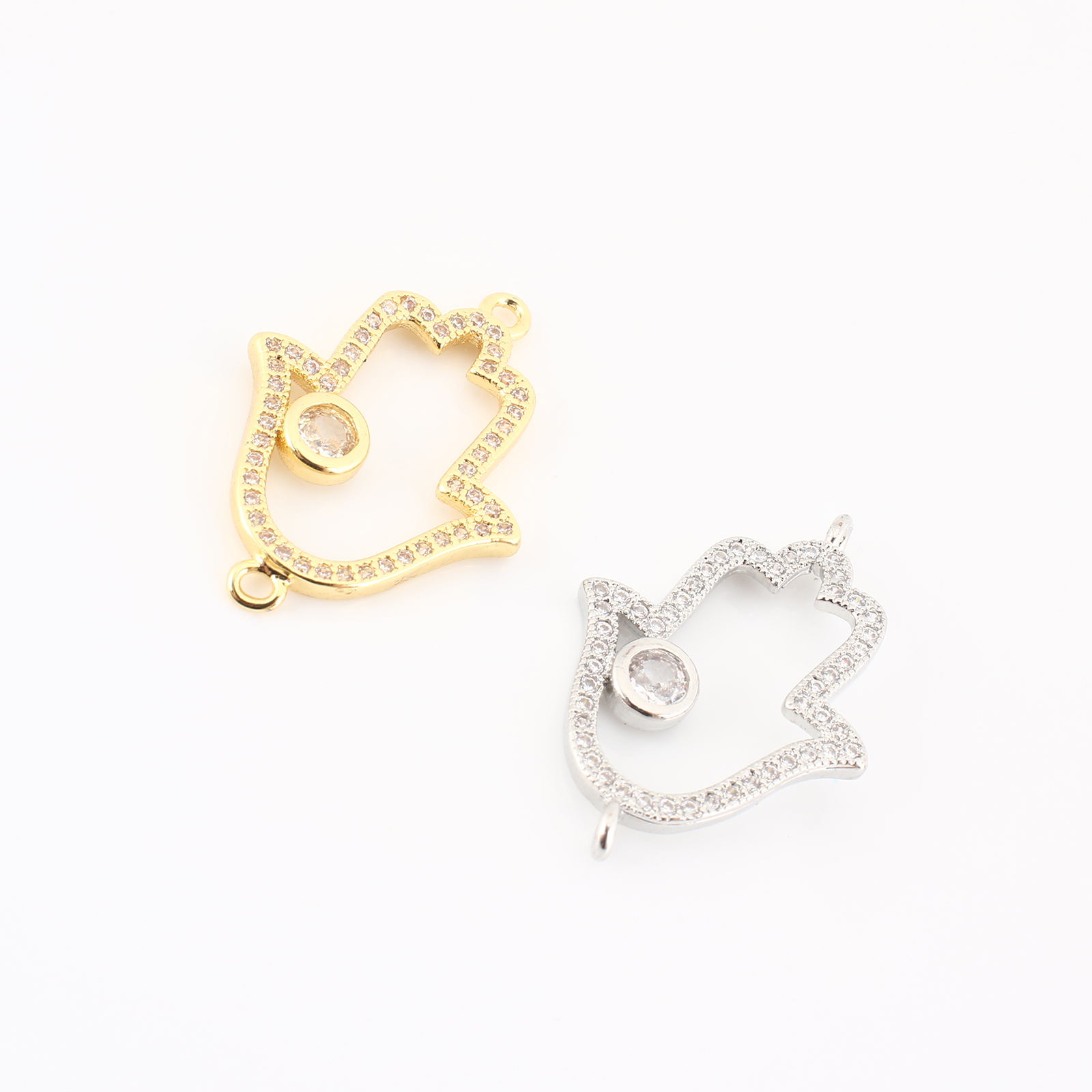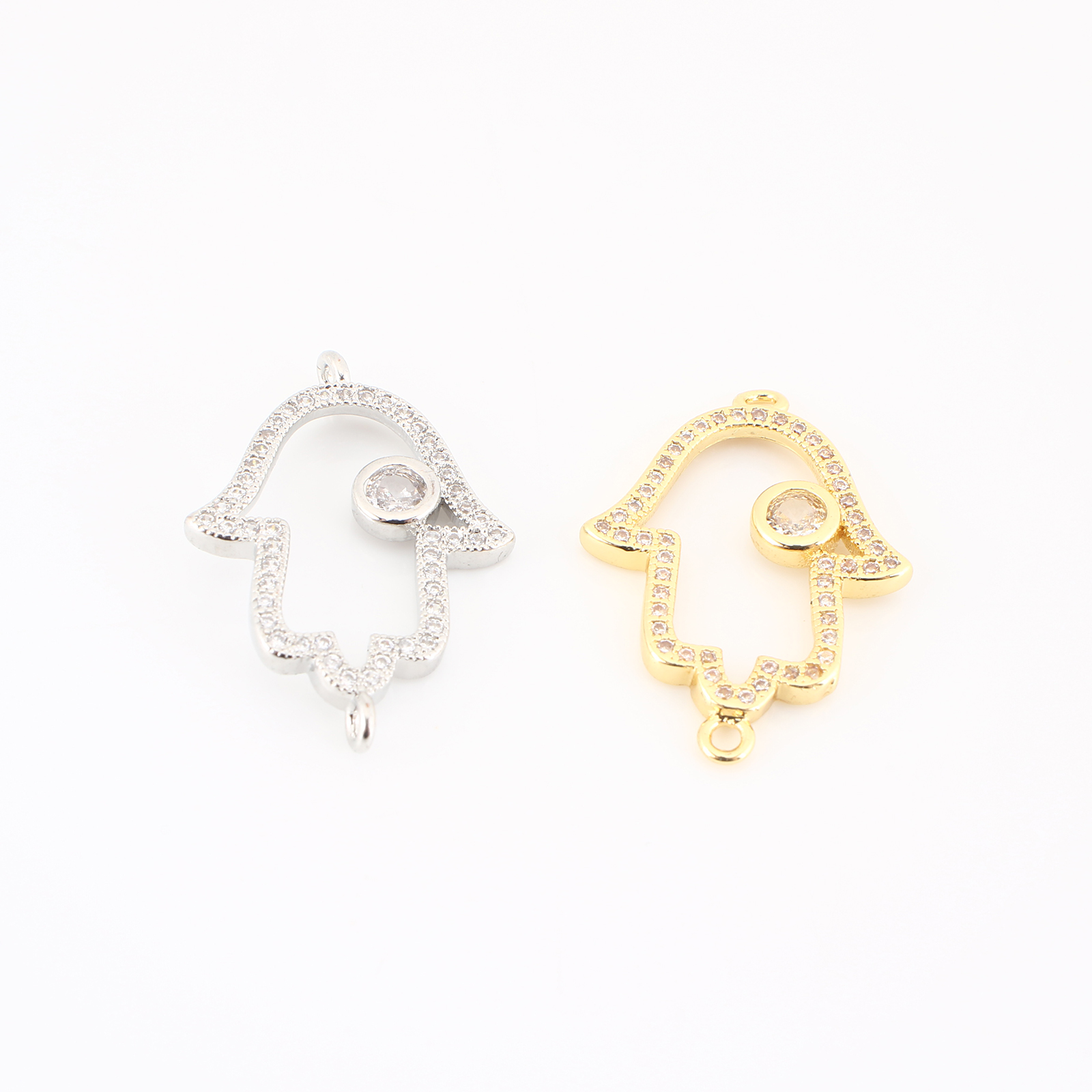 Cubic Zirconia Micro Pave Latão Connector, cobre, mão Hamsa, banhado, DIY & micro pavimento em zircônia cúbica & vazio, Mais cores pare escolha, 25x17x2mm, vendido por PC