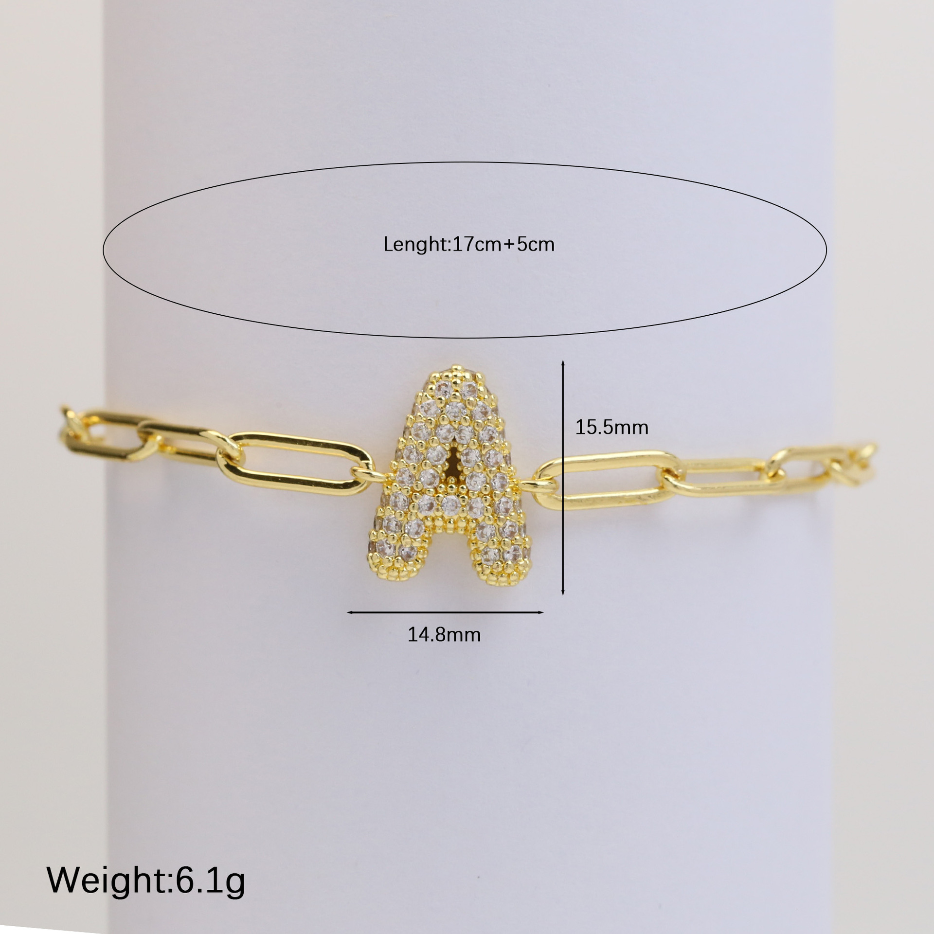 Cubic Zirconia Micro Pave Latão Pulseira, cobre, cromado de cor dourada, letras são da a Z & Cadeia de retângulo & Vario tipos a sua escolha & micro pavimento em zircônia cúbica & para mulher, Mais cores pare escolha, 14.80x15.50mm, vendido para Aprox 17 cm Strand