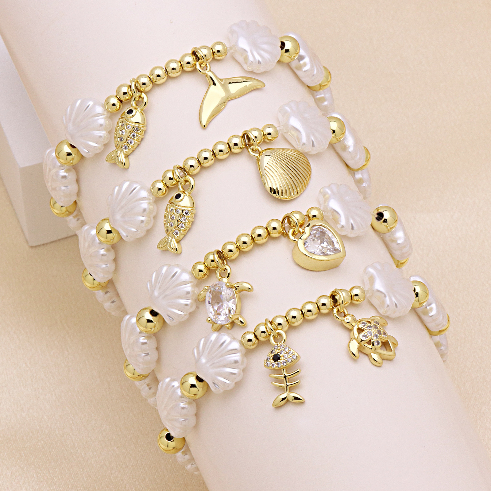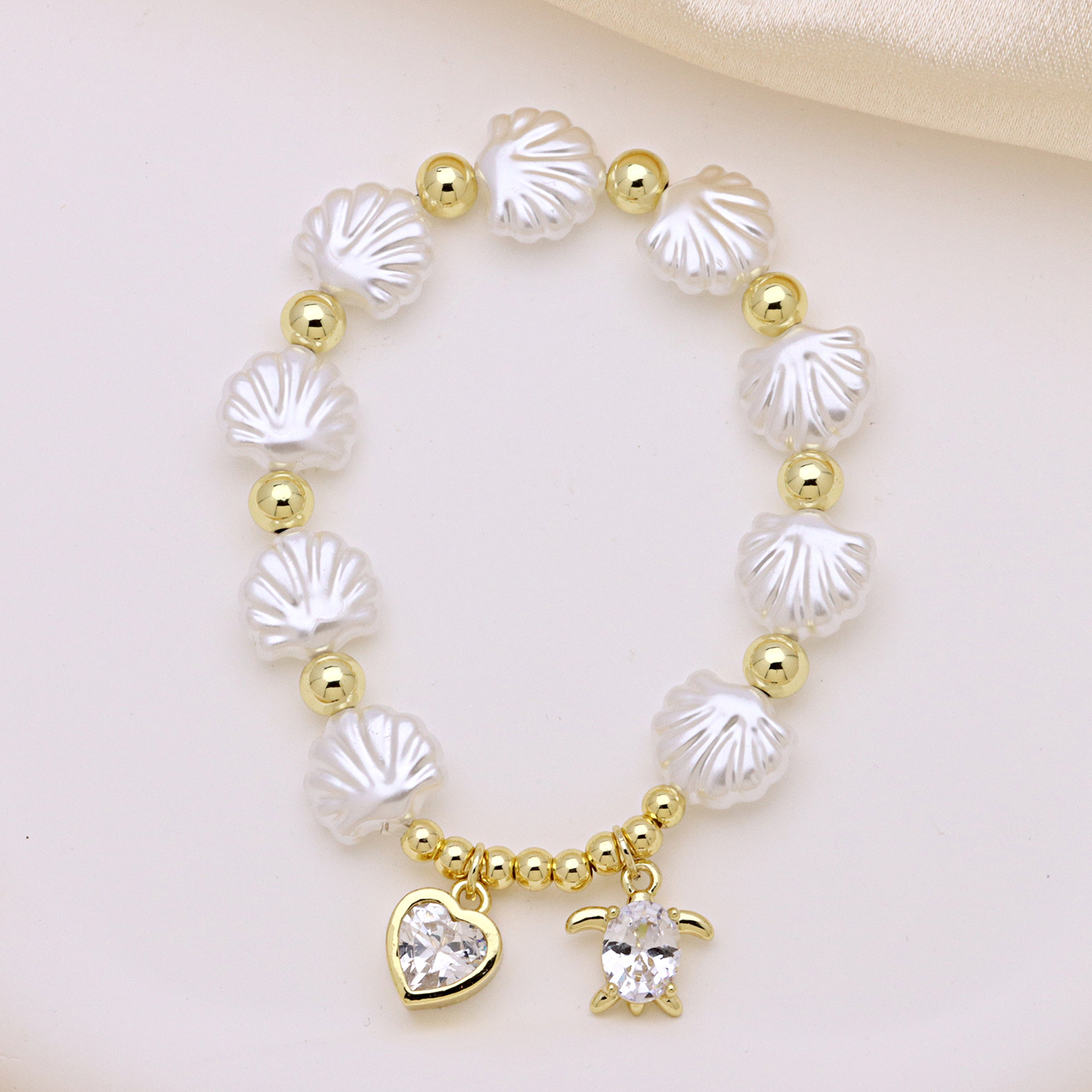 Cubic Zirconia Micro Pave Latão Pulseira, cobre, with Concha de resina, cromado de cor dourada, Vario tipos a sua escolha & micro pavimento em zircônia cúbica & para mulher, Mais cores pare escolha, vendido para Aprox 18 cm Strand
