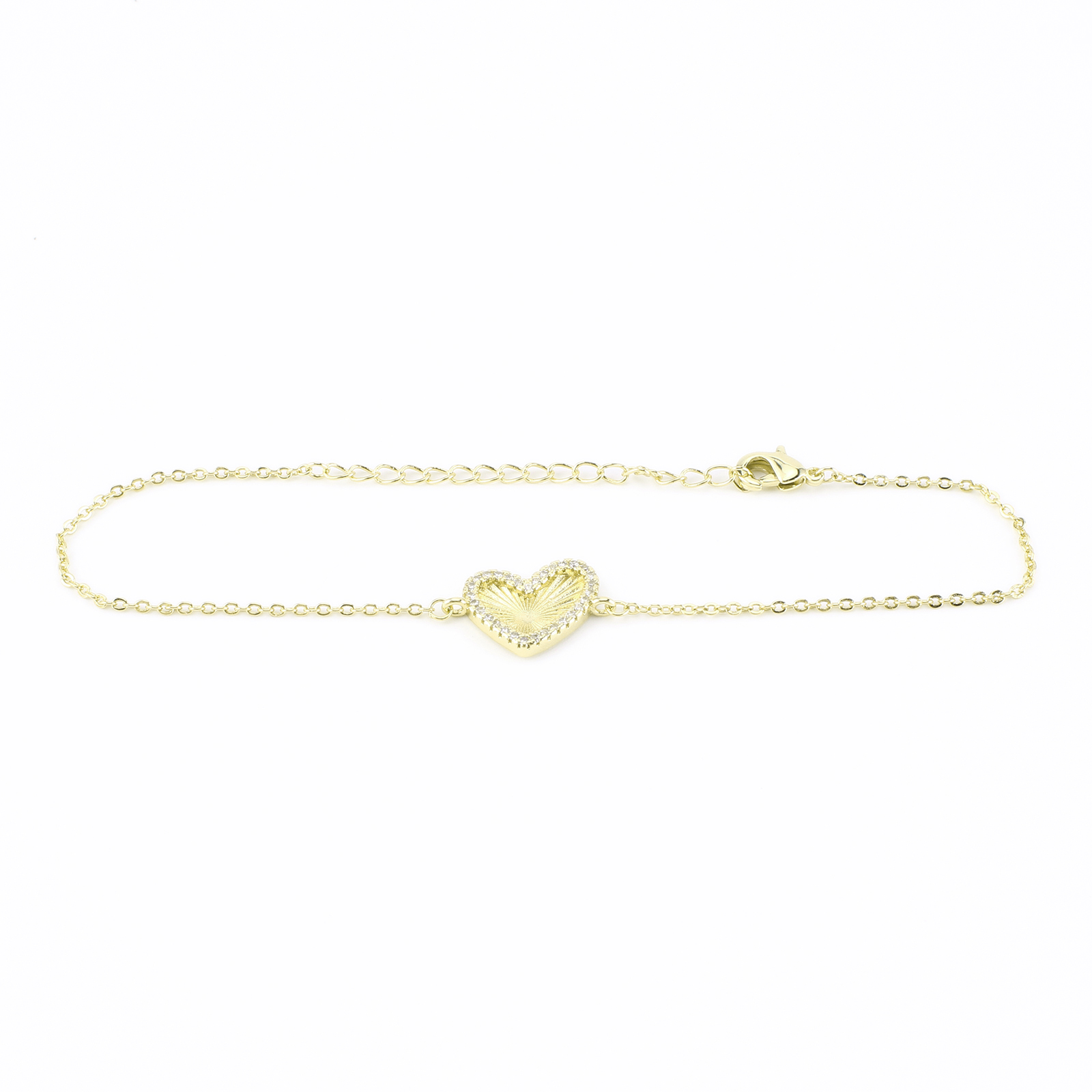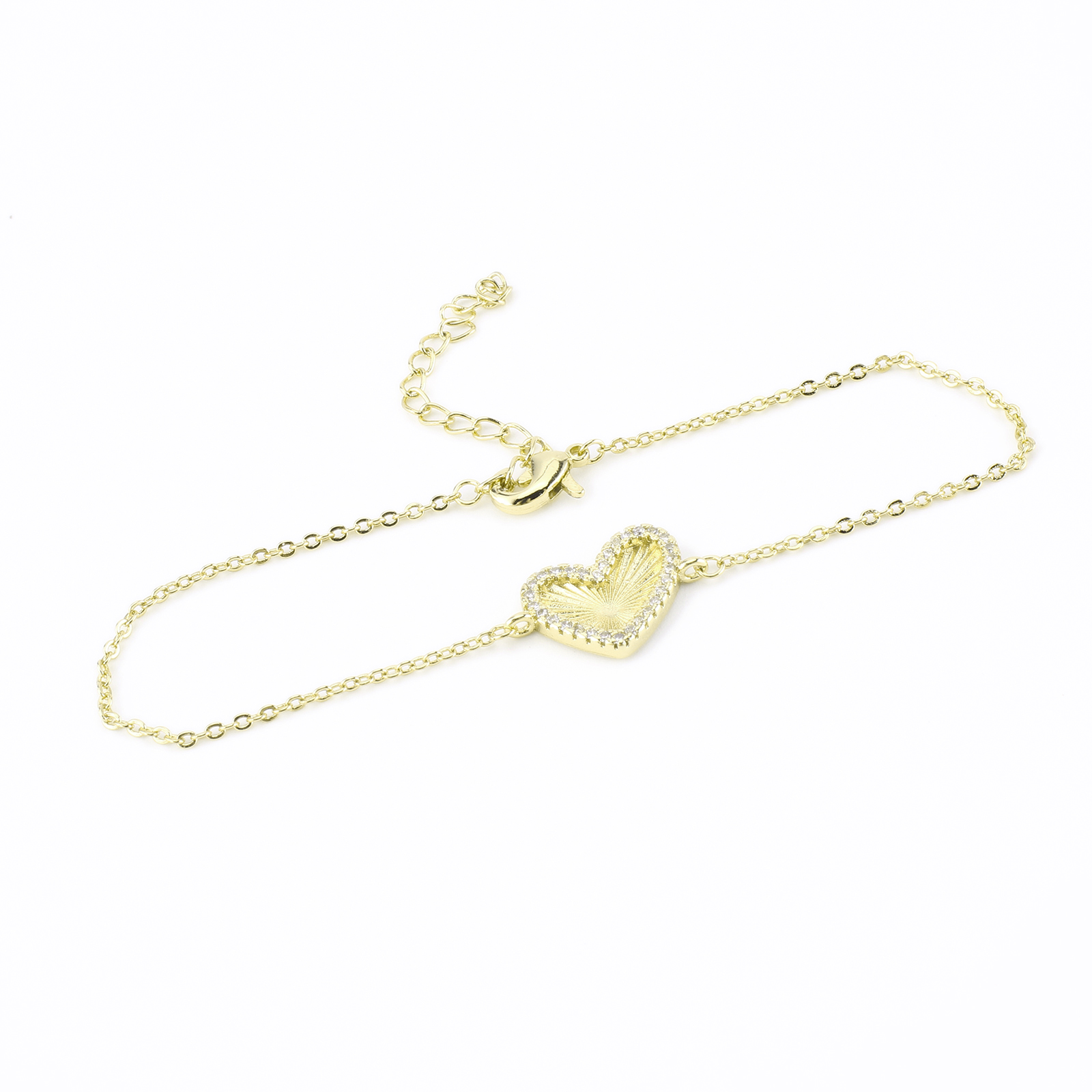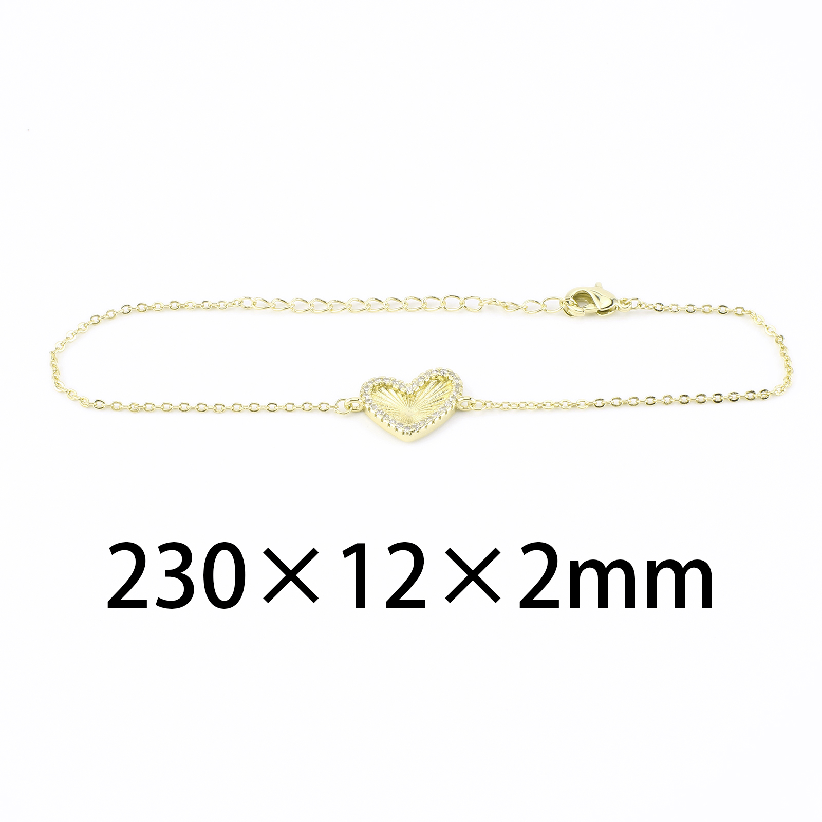 Cubic Zirconia Micro Pave Latão Pulseira, cobre, Coração, cromado de cor dourada, micro pavimento em zircônia cúbica & para mulher, comprimento Aprox 23 cm, vendido por PC