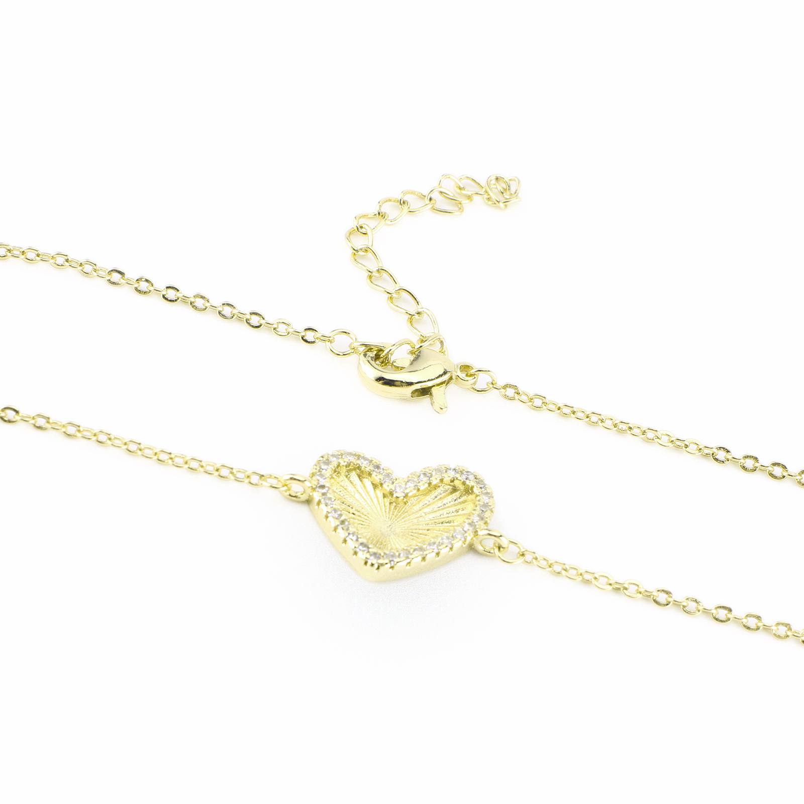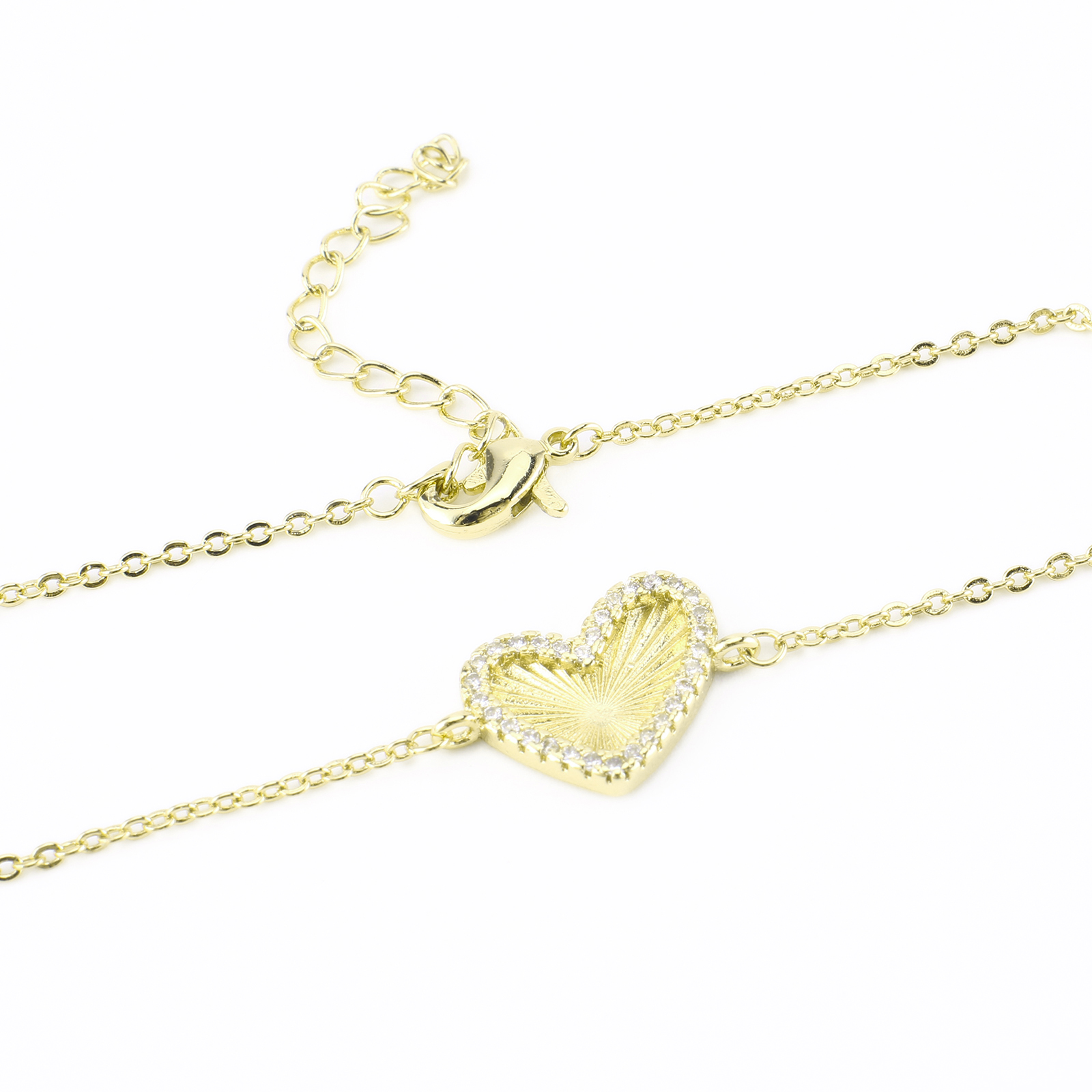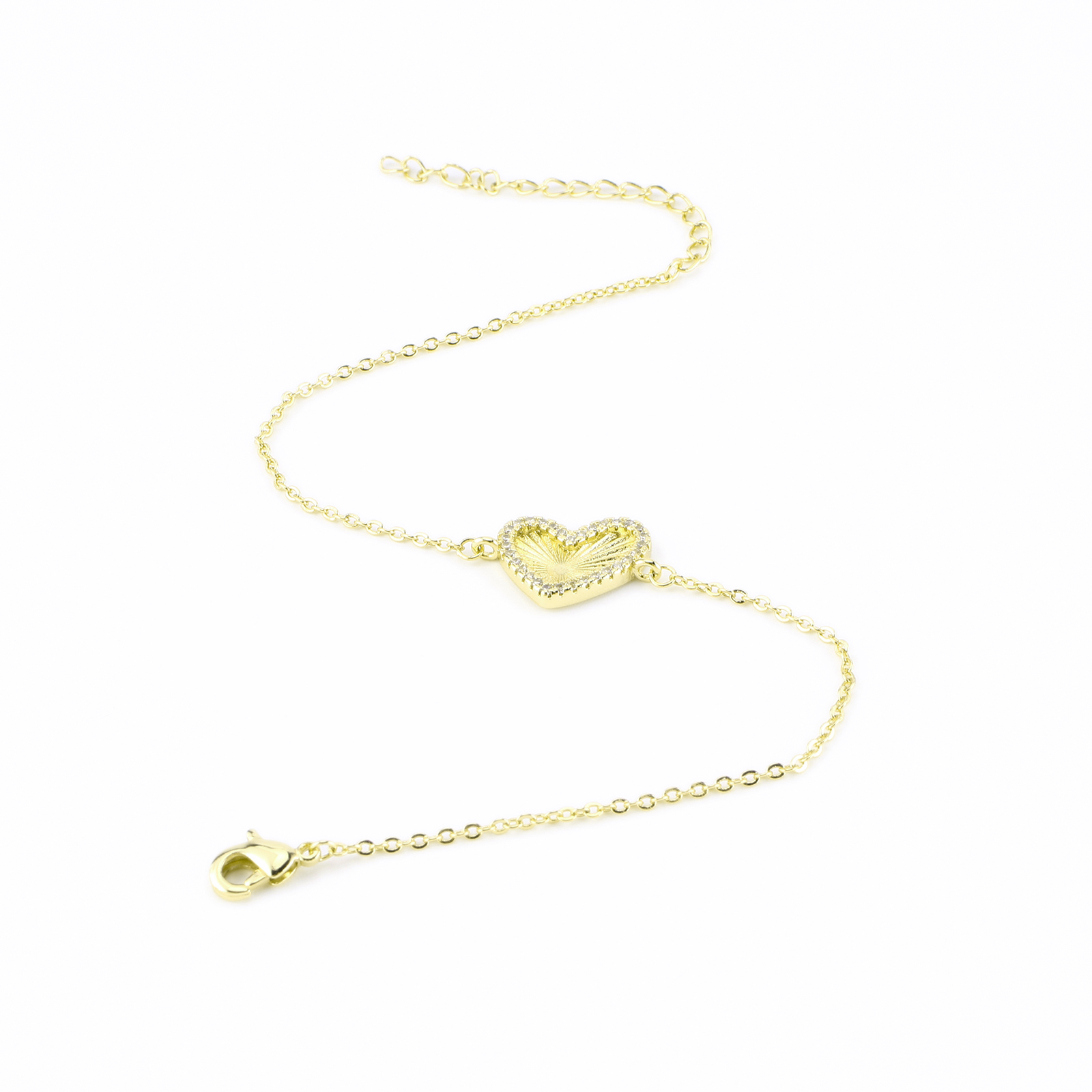 Cubic Zirconia Micro Pave Latão Pulseira, cobre, Coração, cromado de cor dourada, micro pavimento em zircônia cúbica & para mulher, comprimento Aprox 23 cm, vendido por PC
