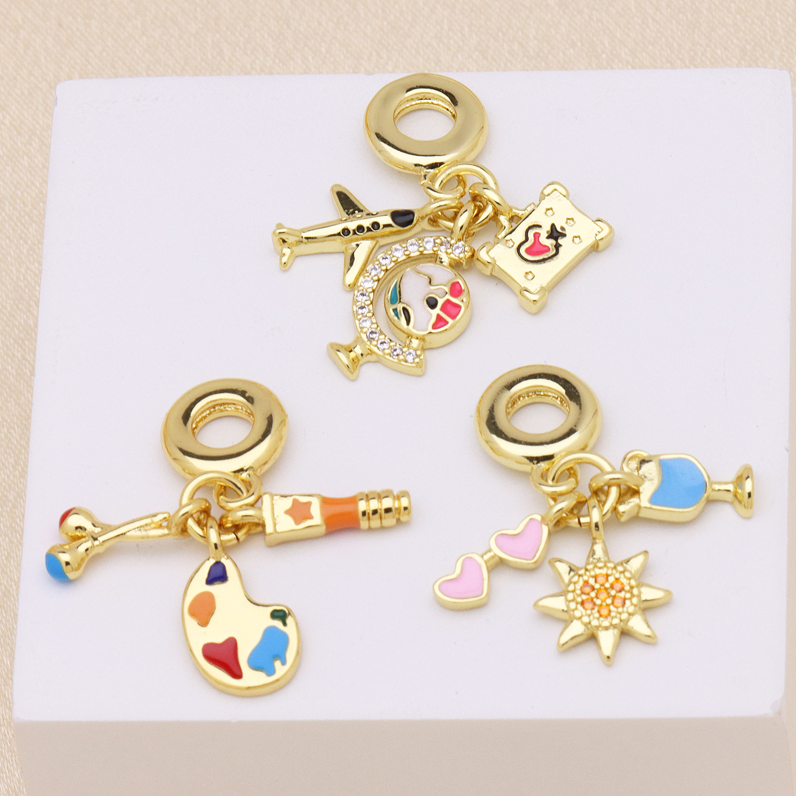 Cubic Zirconia Micro Pave bronze Pingente, cobre, cromado de cor dourada, Forma diferente para escolha & DIY & micro pavimento em zircônia cúbica & esmalte, Mais cores pare escolha, níquel, chumbo e cádmio livre, 3PCs/Bag, vendido por Bag