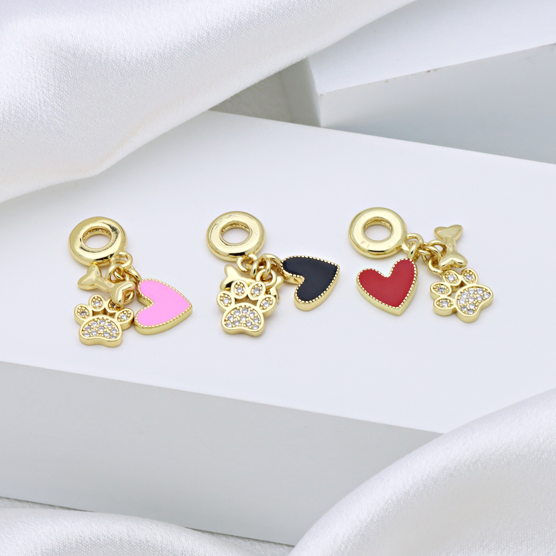 Cubic Zirconia Micro Pave bronze Pingente, cobre, cromado de cor dourada, Forma diferente para escolha & DIY & micro pavimento em zircônia cúbica & esmalte, Mais cores pare escolha, níquel, chumbo e cádmio livre, 3PCs/Bag, vendido por Bag