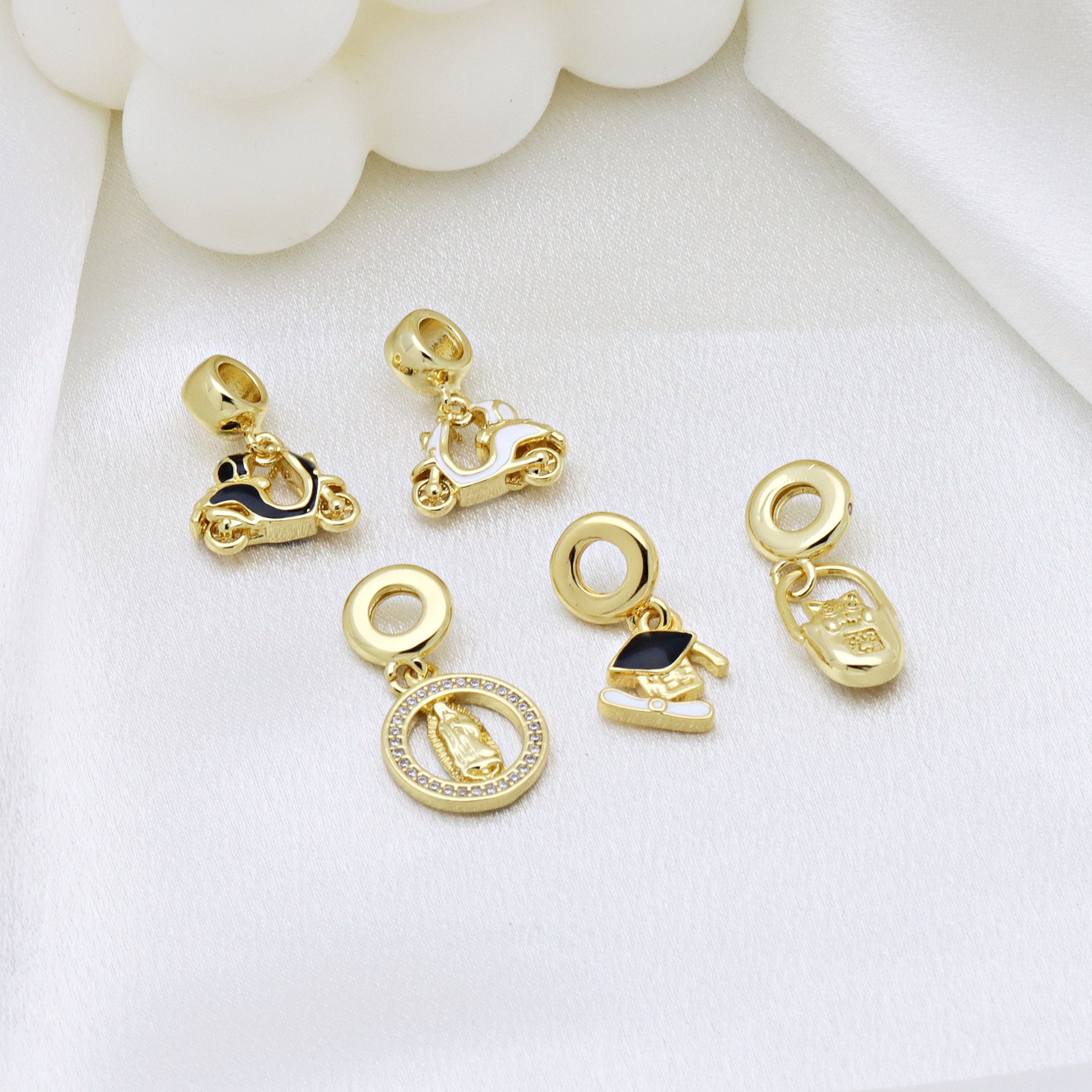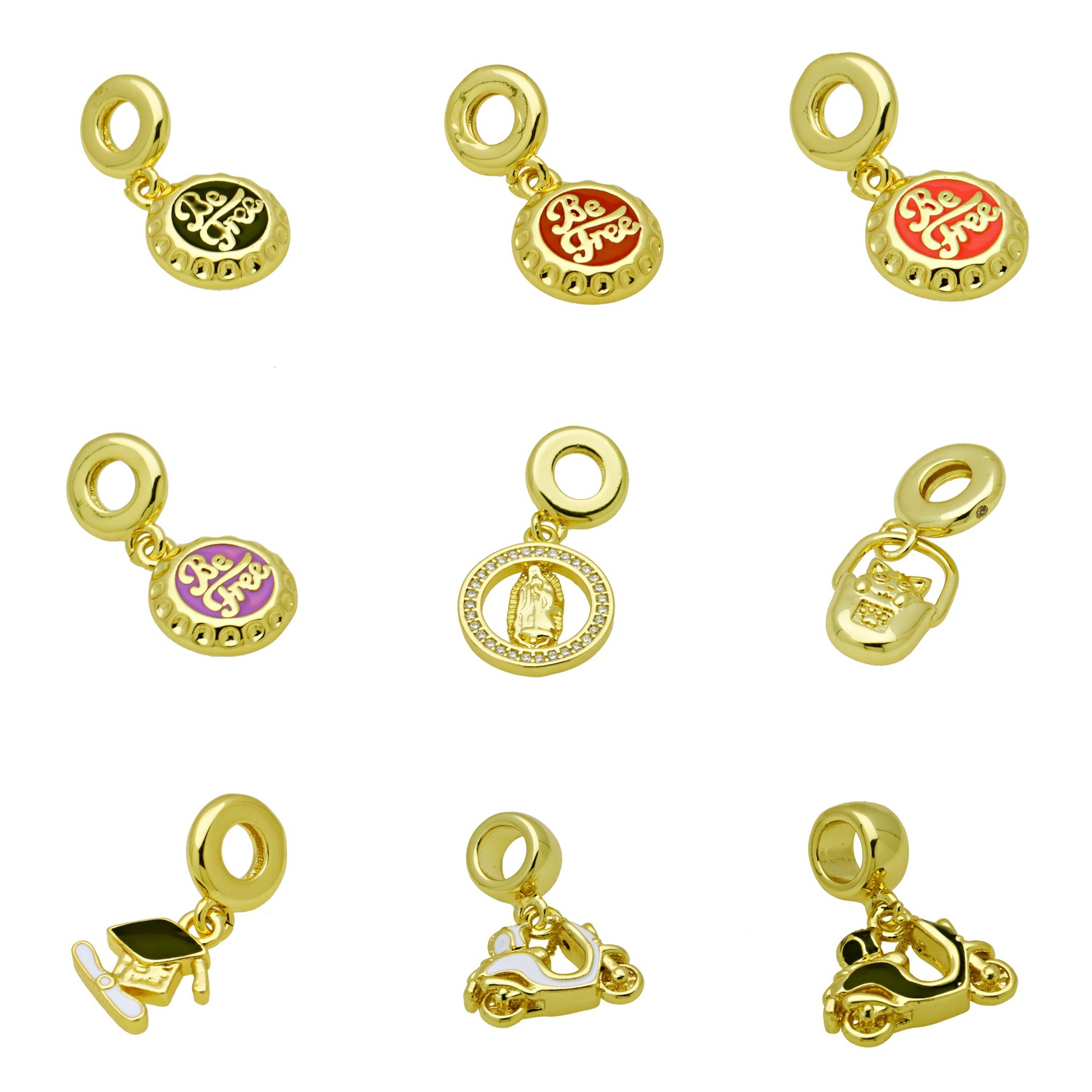 Cubic Zirconia Micro Pave bronze Pingente, cobre, cromado de cor dourada, Forma diferente para escolha & DIY & micro pavimento em zircônia cúbica & esmalte, Mais cores pare escolha, níquel, chumbo e cádmio livre, 3PCs/Bag, vendido por Bag