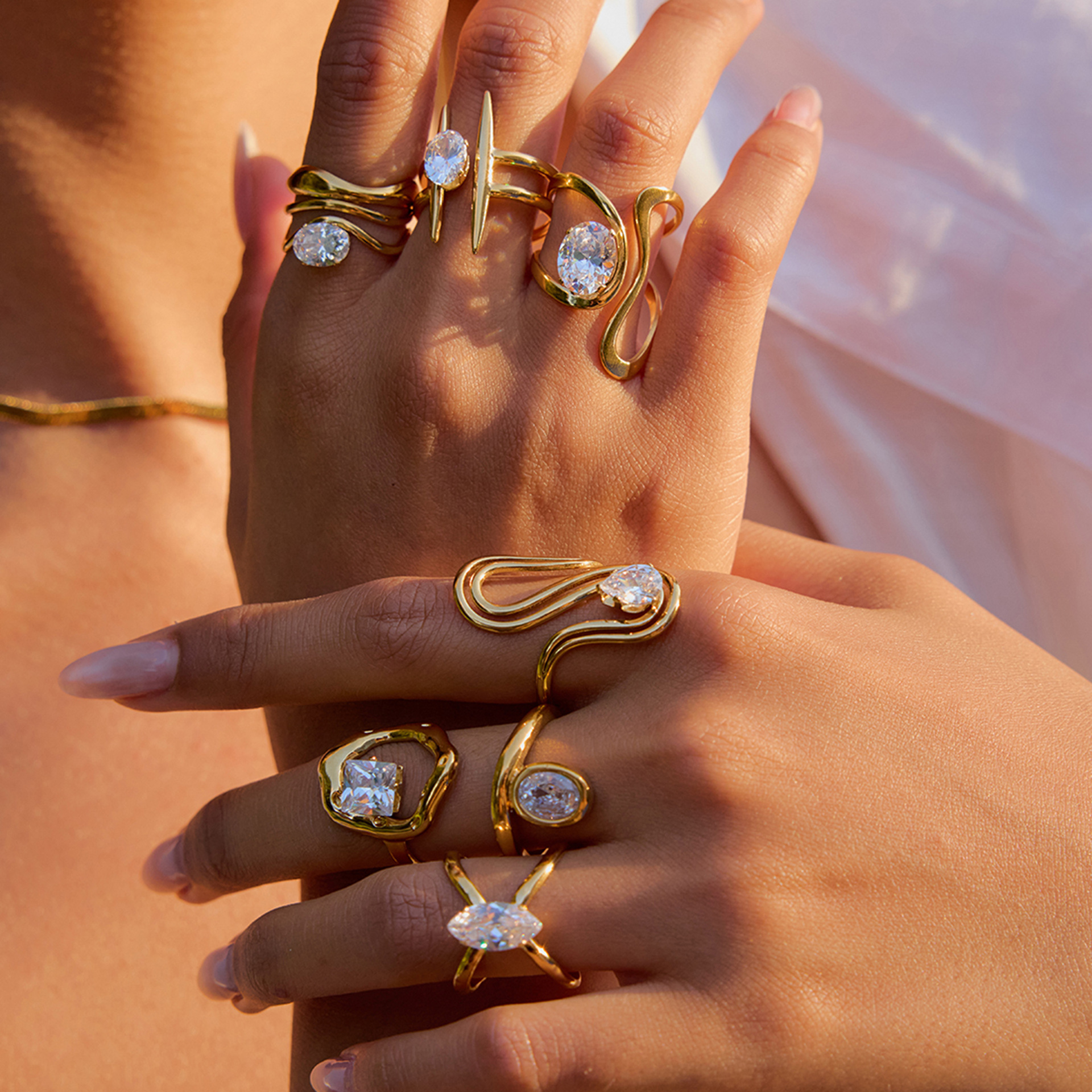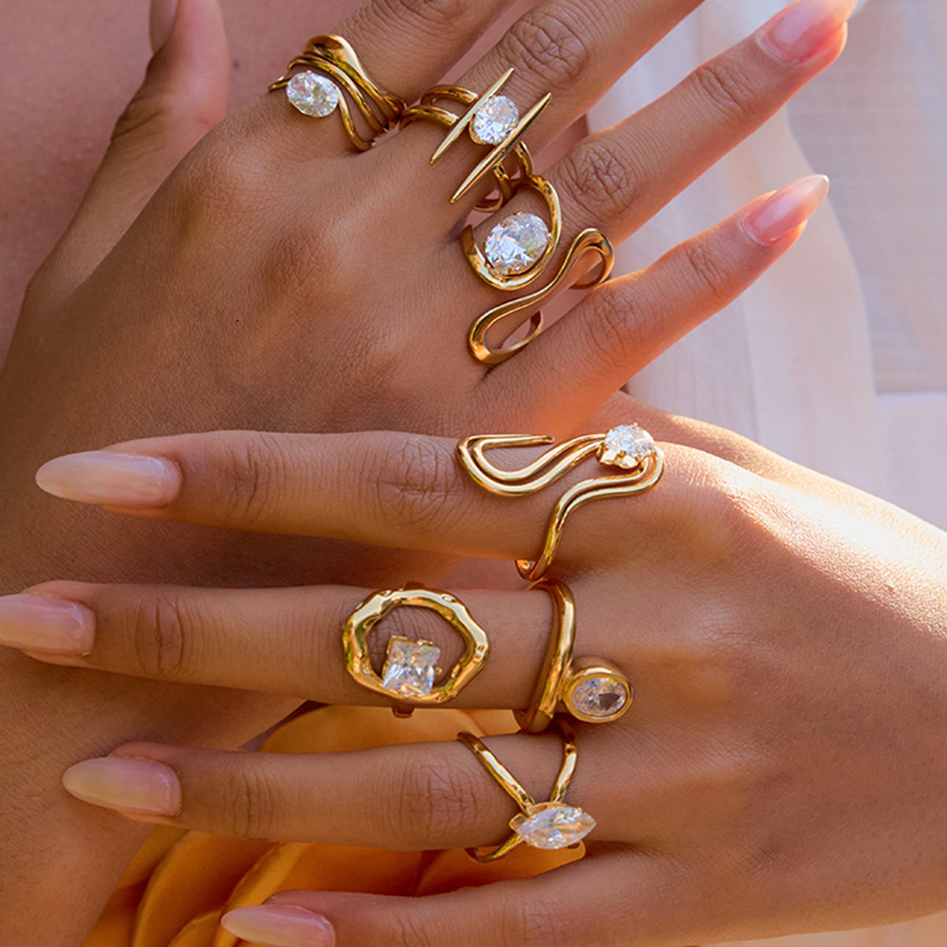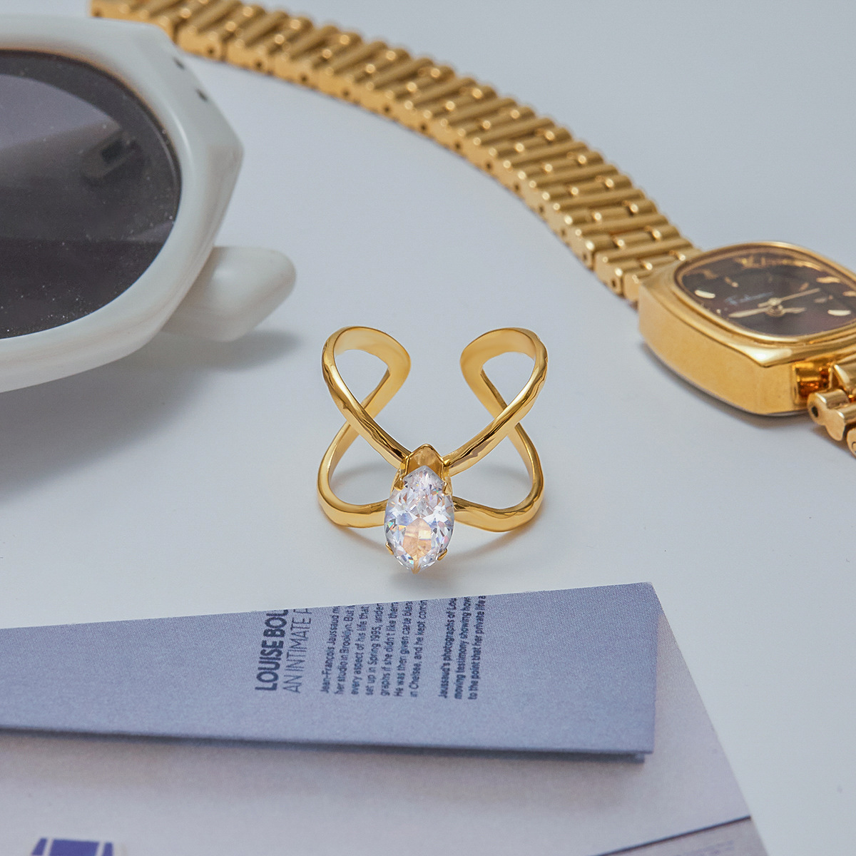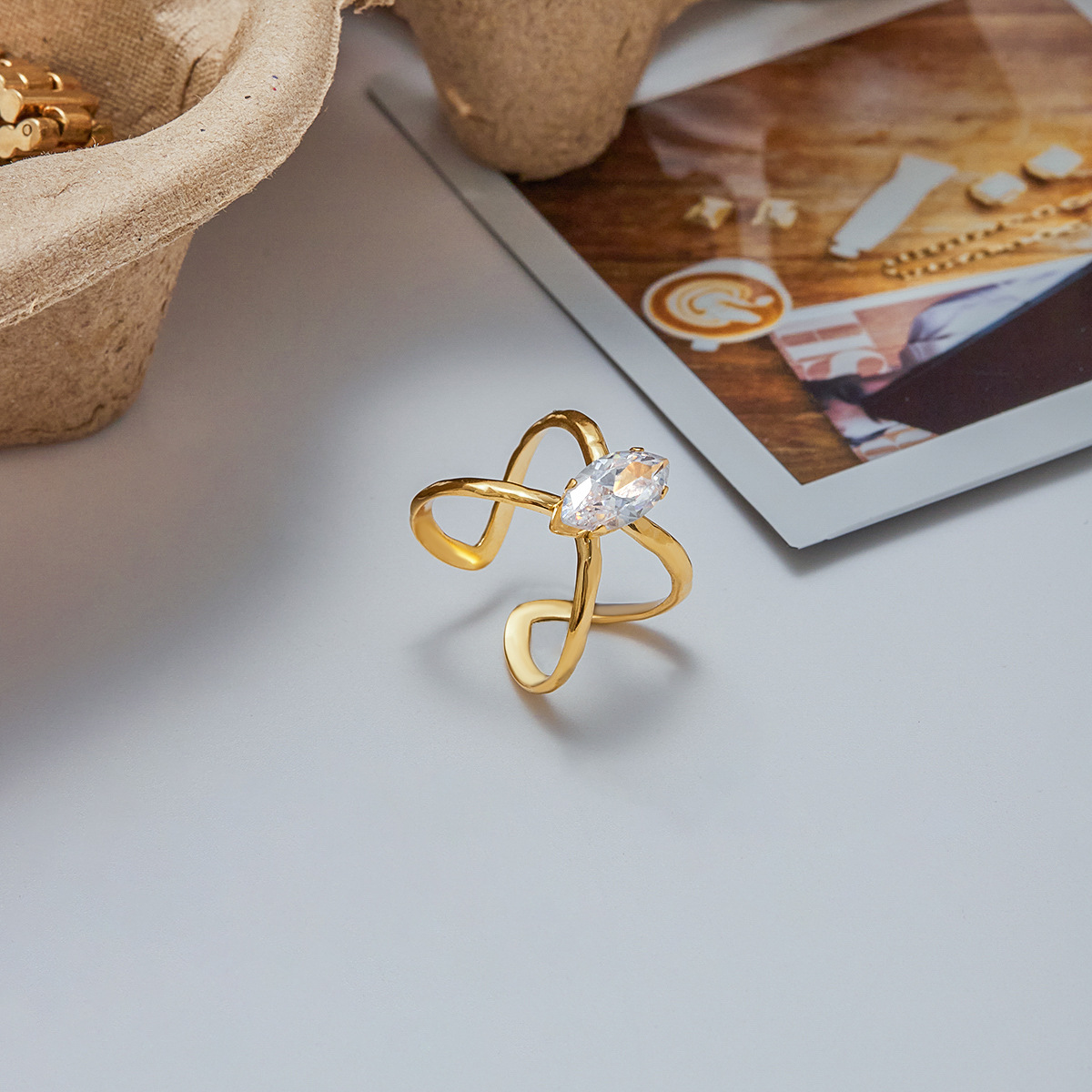 Cubic Zirconia anel de dedo de aço inoxidável, Aço inoxidável 304, with zircone em forma de cubo, banhado, Vario tipos a sua escolha & para mulher & vazio, dourado, vendido por PC