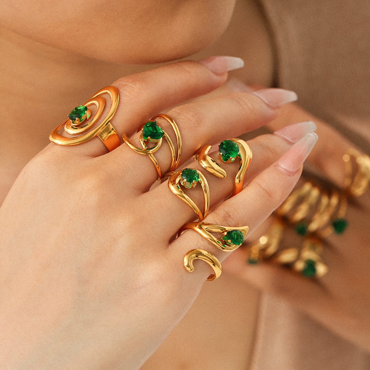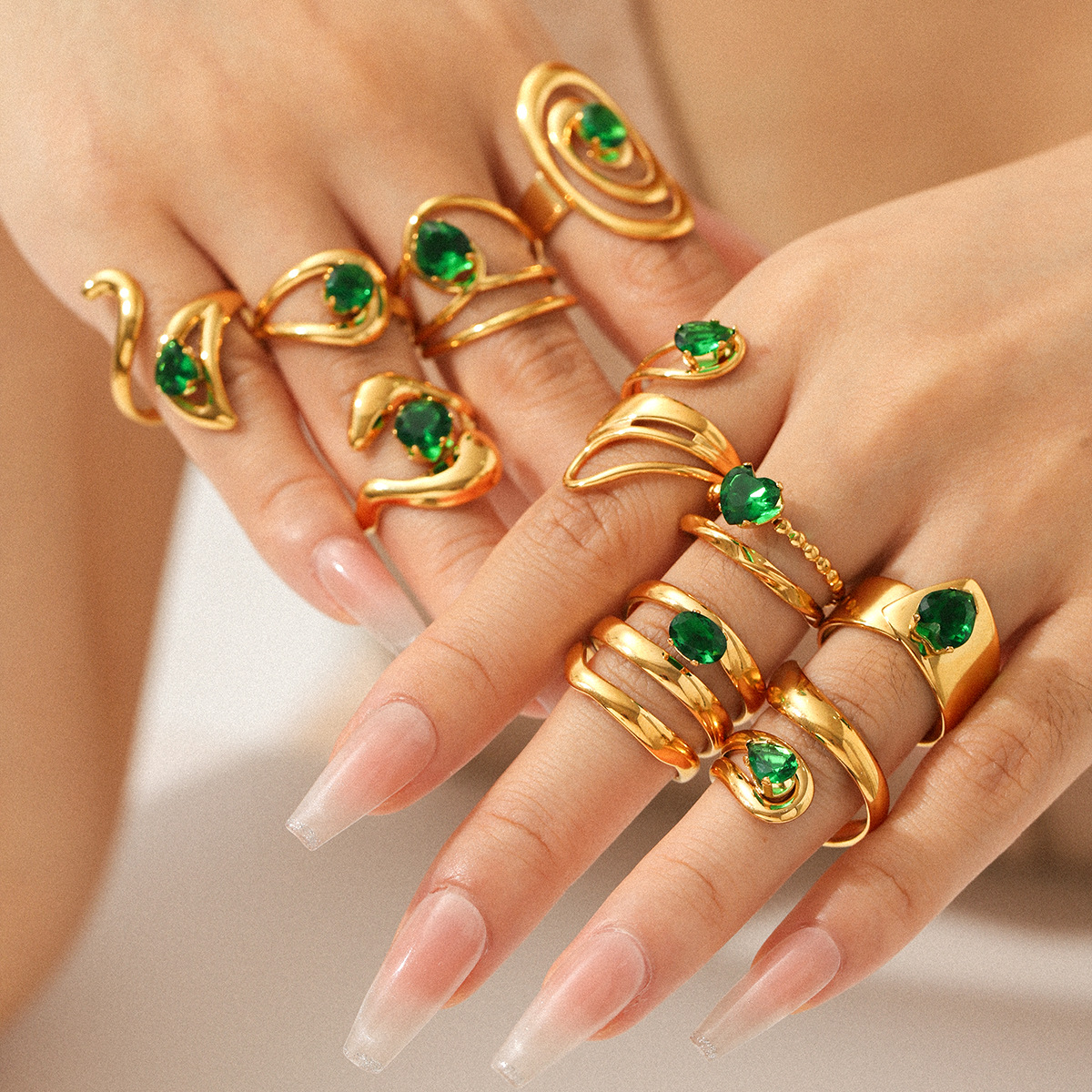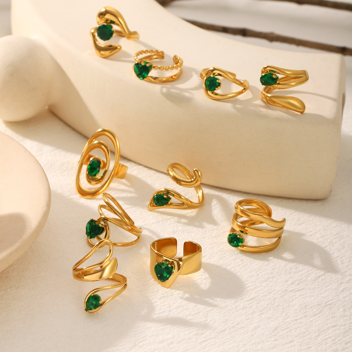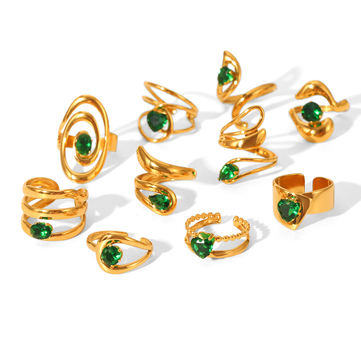 Cubic Zirconia anel de dedo de aço inoxidável, Aço inoxidável 304, with zircone em forma de cubo, joias de moda & Vario tipos a sua escolha & para mulher, dourado, vendido por PC