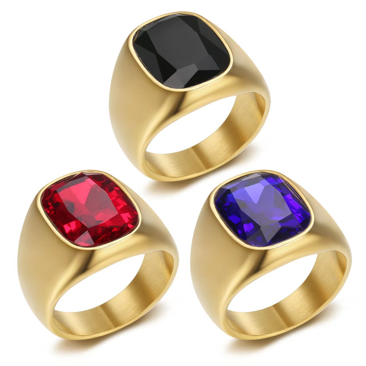 Cubic Zirconia anel de dedo de aço inoxidável, Aço inoxidável 304, with zircone em forma de cubo, cromado de cor dourada, joias de moda & tamanho diferente para a escolha & para o homem, Mais cores pare escolha, vendido por PC