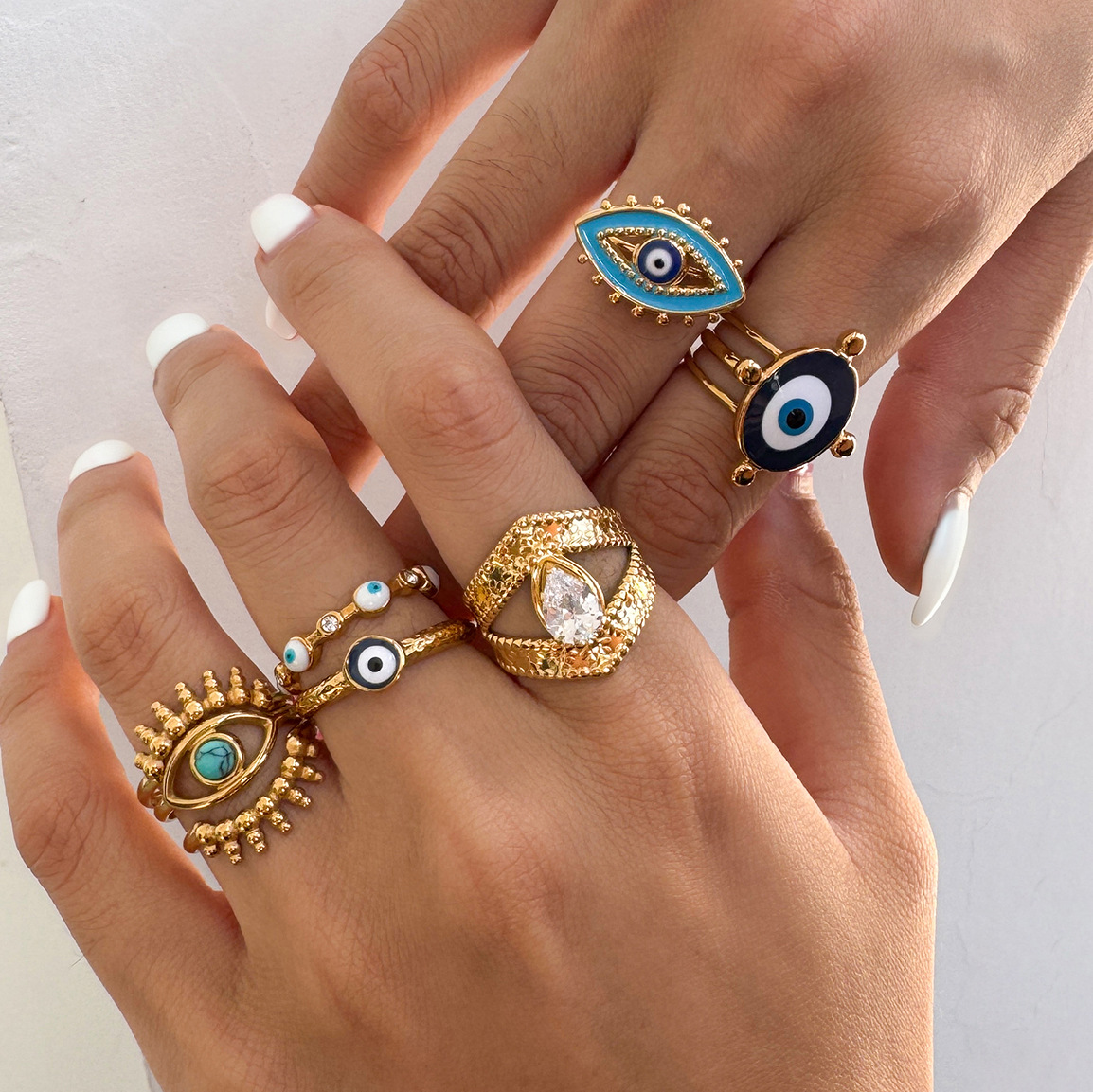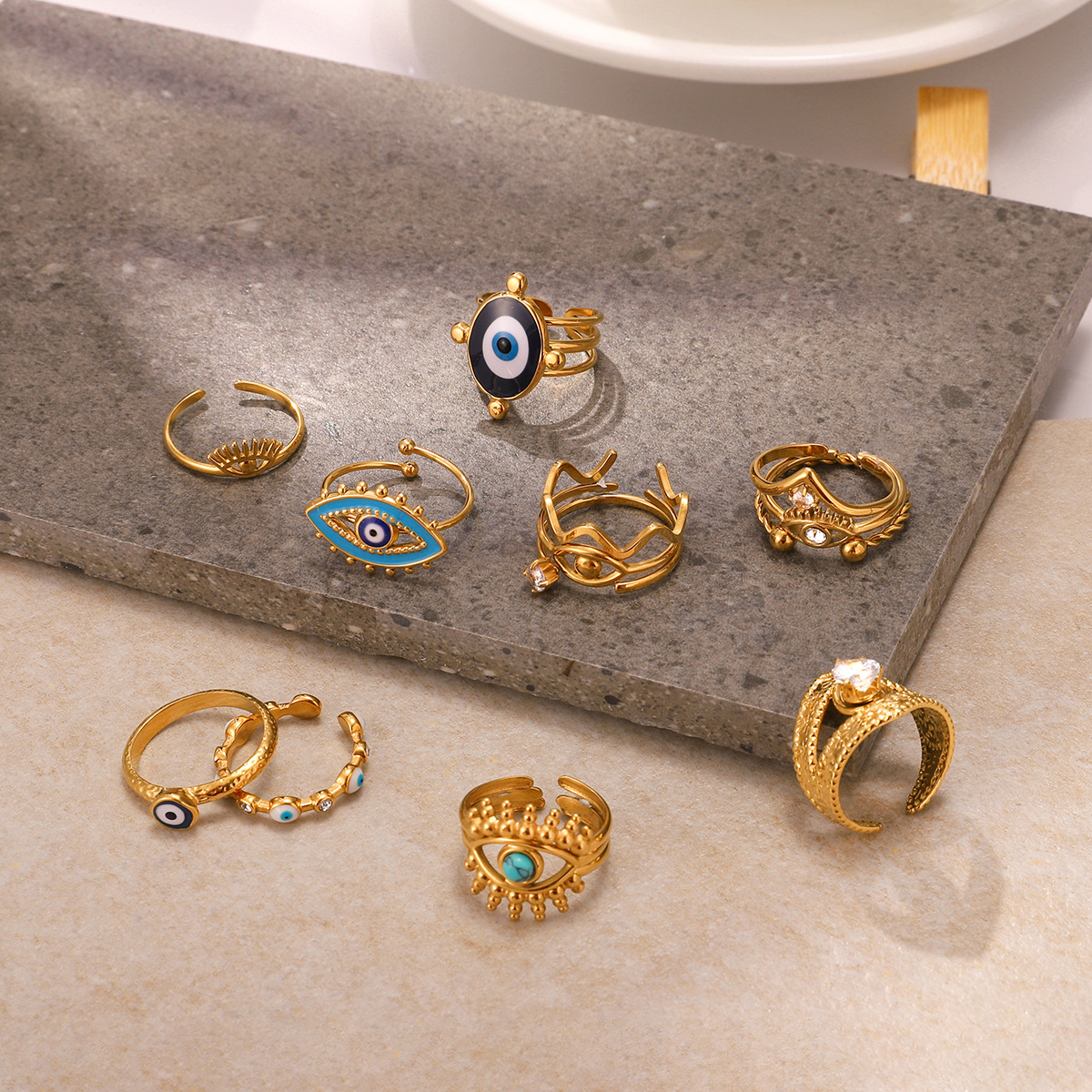 Evil Eye Jewelry Ring Finger, aço inoxidável, banhado, Vario tipos a sua escolha & para mulher & esmalte & com zircônia cúbica, Mais cores pare escolha, vendido por PC