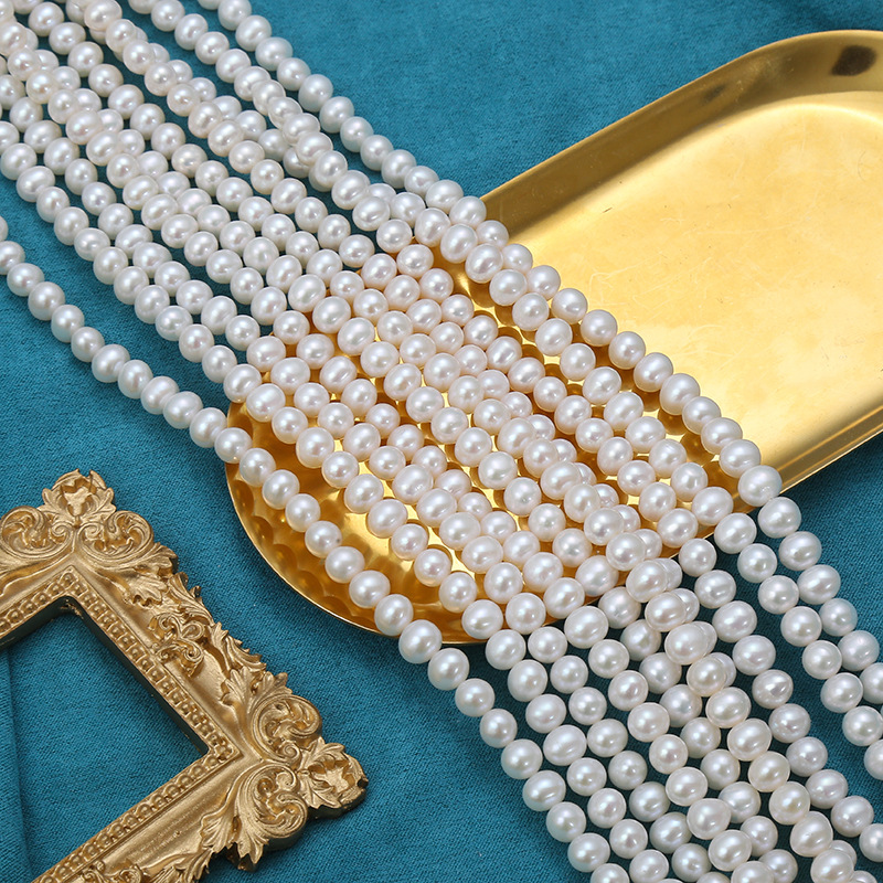 Natural de água doce pérolas pérolas soltas, Pérolas de água doce, elipse, DIY, branco, 4-5mm, vendido por Strand
