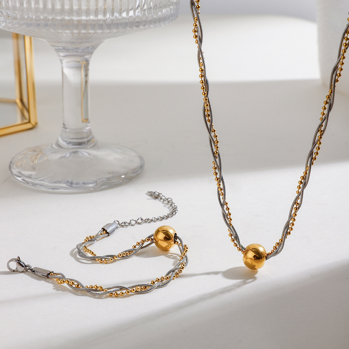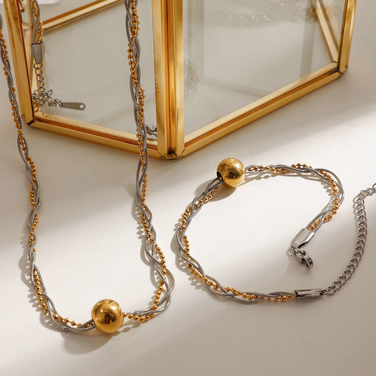 Conjuntos de jóias de aço inoxidável, colar de corrente camisola & Brincos, Aço inoxidável 304, cromado de cor dourada, joias de moda, Mais cores pare escolha, vendido por PC