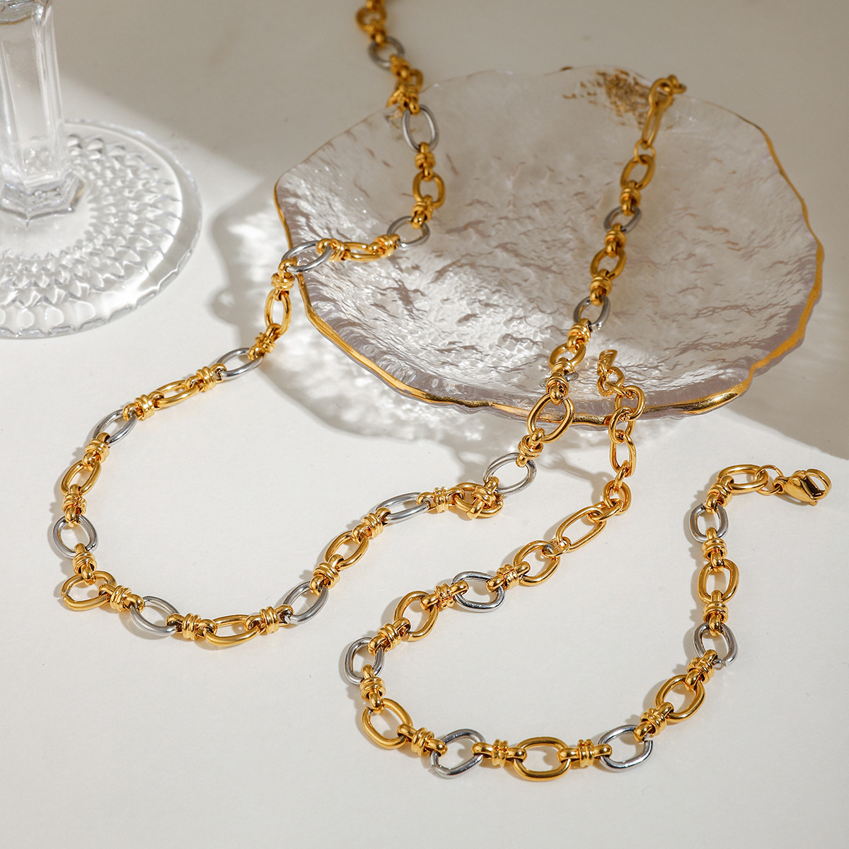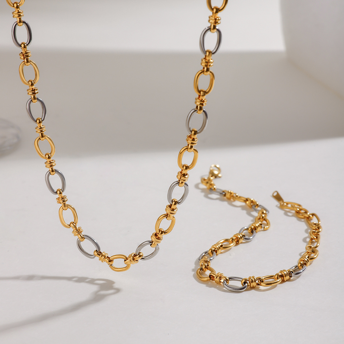 Conjuntos de jóias de aço inoxidável, colar de corrente camisola & Brincos, Aço inoxidável 304, cromado de cor dourada, joias de moda, Mais cores pare escolha, vendido por PC
