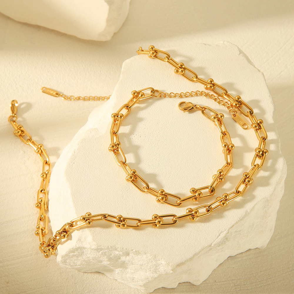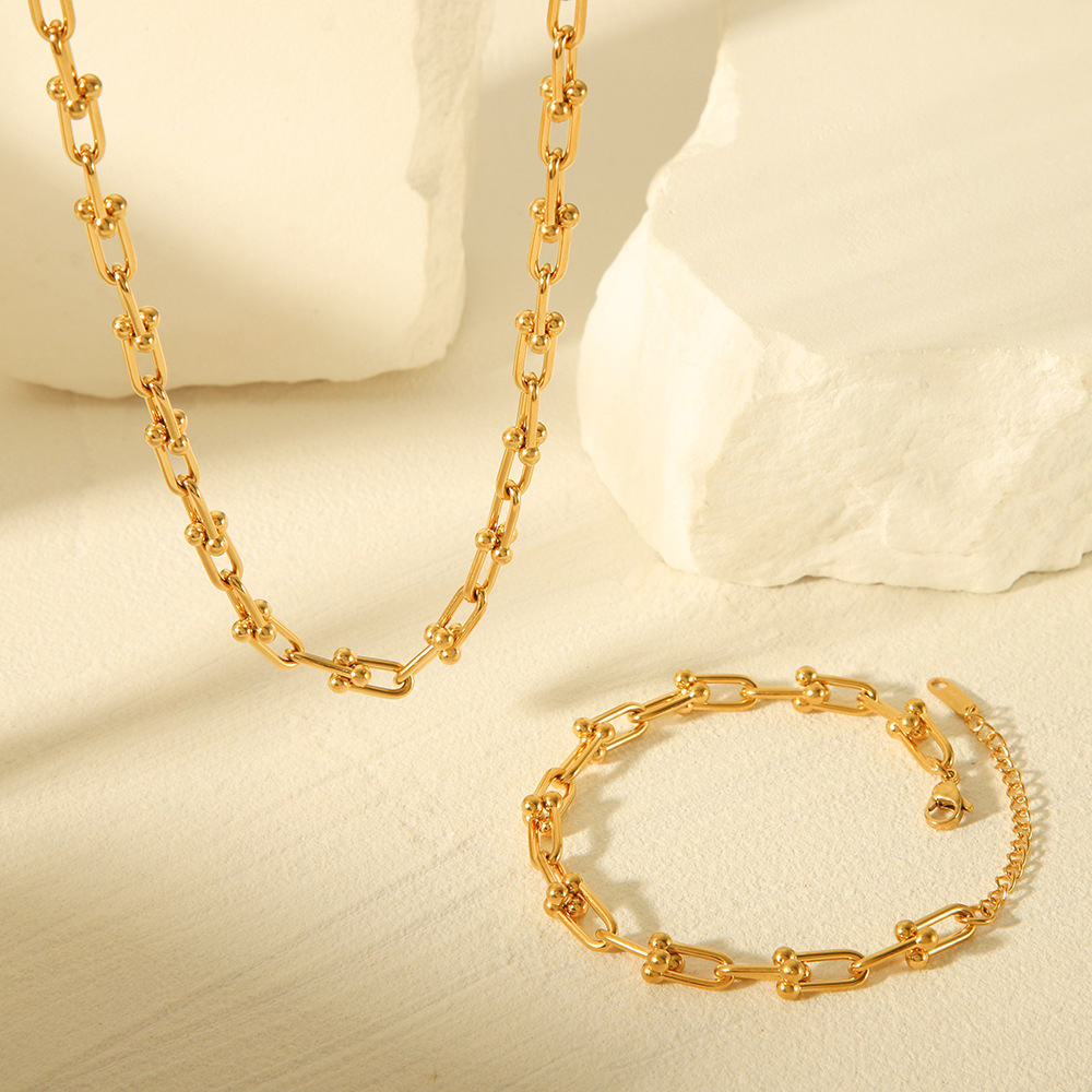 Conjuntos de jóias de aço inoxidável, colar de corrente camisola & Brincos, Aço inoxidável 304, cromado de cor dourada, joias de moda, Mais cores pare escolha, vendido por PC