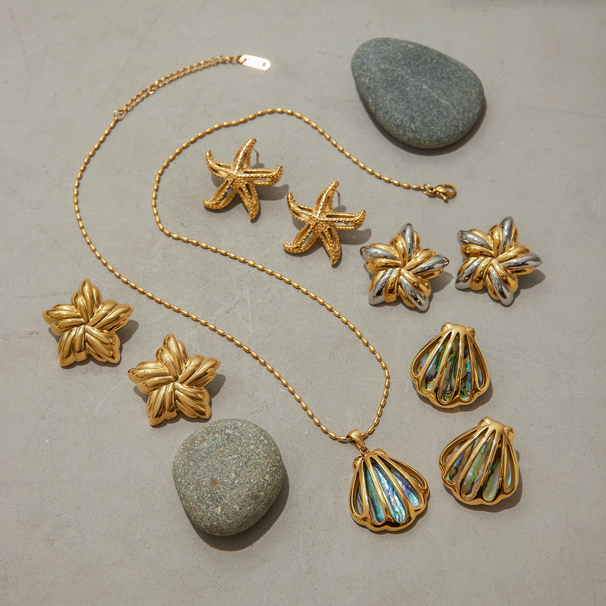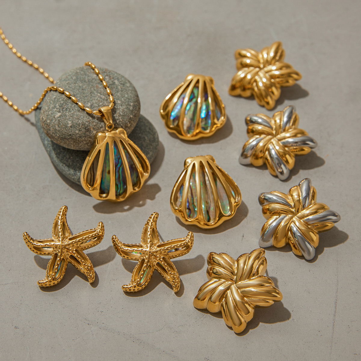 Conjuntos de jóias de aço inoxidável, Aço inoxidável 304, with Concha alabone, banhado, joias de moda & Vario tipos a sua escolha & para mulher, dourado, vendido por PC