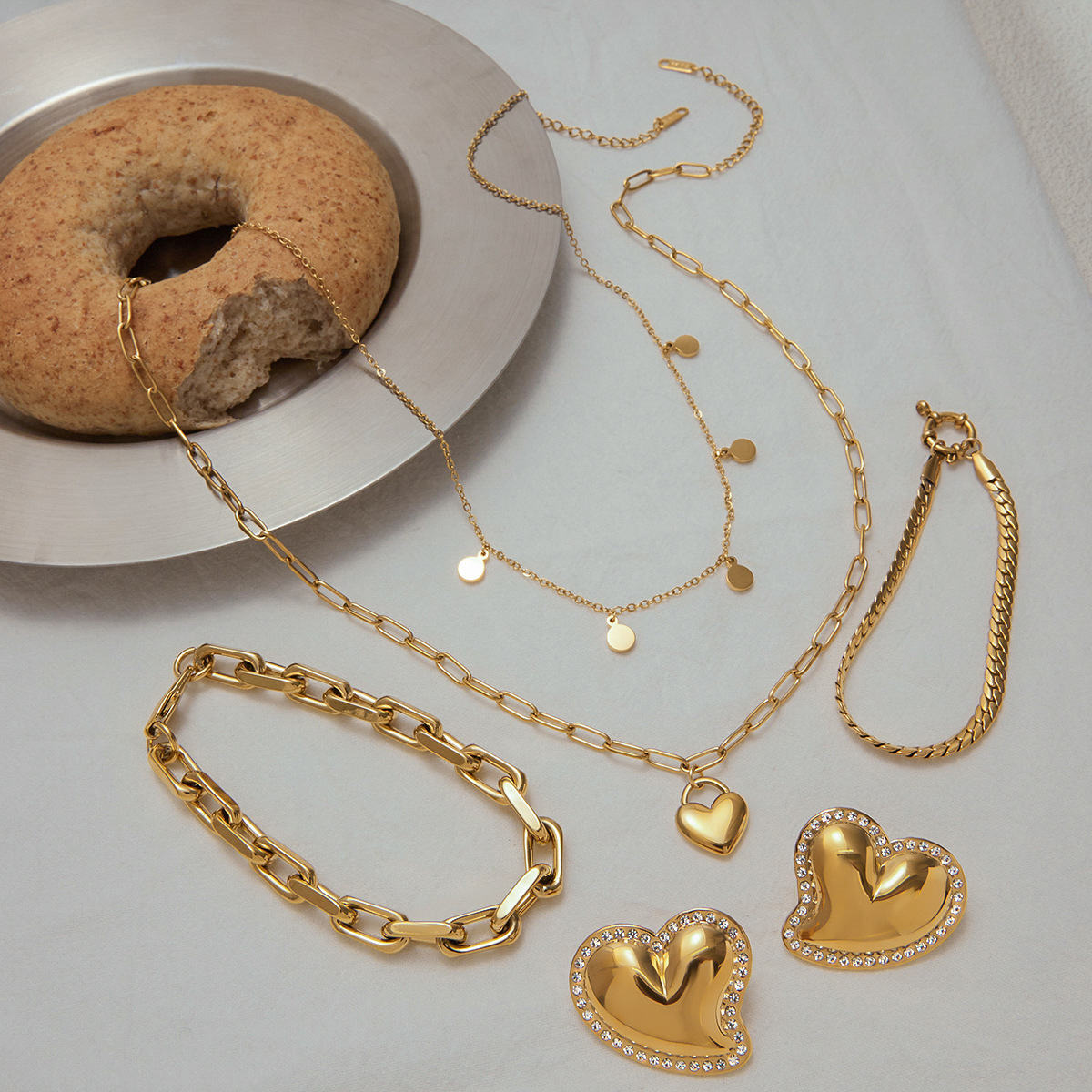 Conjuntos de jóias de aço inoxidável, colar de corrente camisola & Brincos, Aço inoxidável 304, cromado de cor dourada, joias de moda, Mais cores pare escolha, vendido por PC