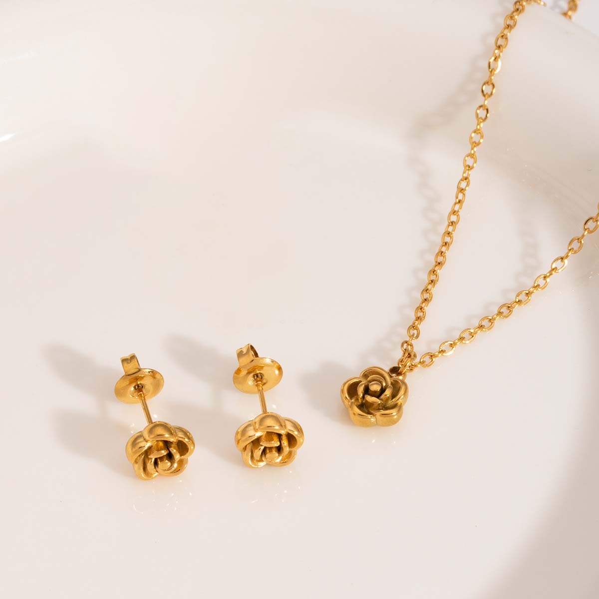 Conjuntos de jóias de aço inoxidável, Aço inoxidável 304, Flor, banhado a ouro genuino, joias de moda & Vario tipos a sua escolha & para mulher, vendido por PC