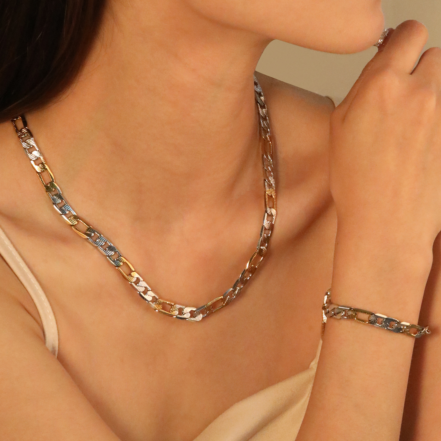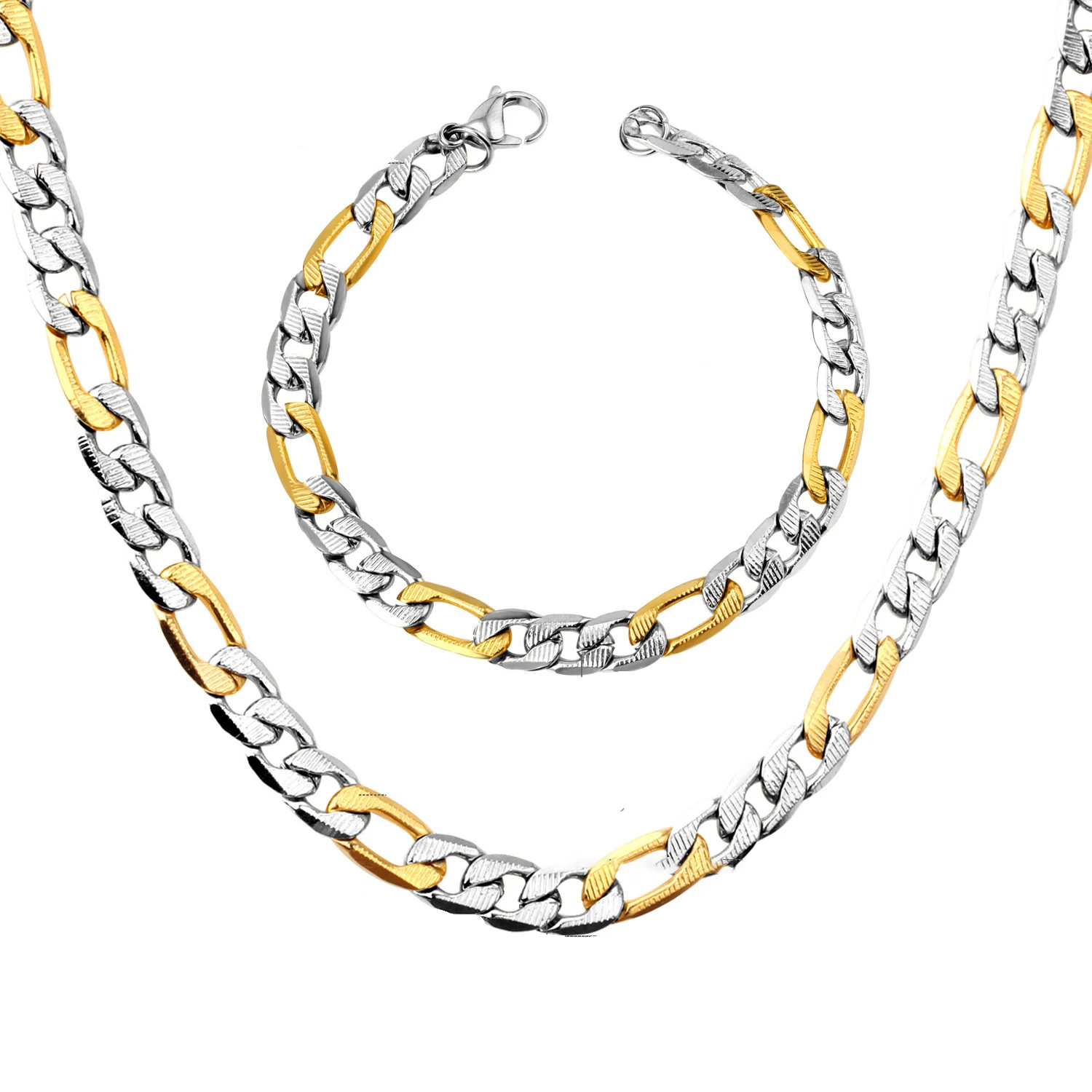 Conjuntos de jóias de aço inoxidável, Bracelete / Pulseira & colar, Aço inoxidável 304, banhado, 2 peças & comprimento diferente para a escolha & unissex, Mais cores pare escolha, vendido por Defina