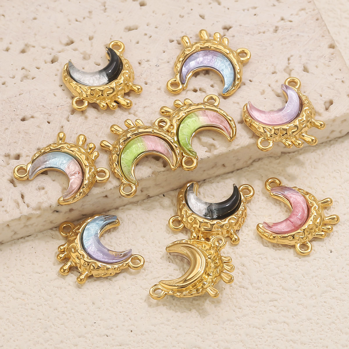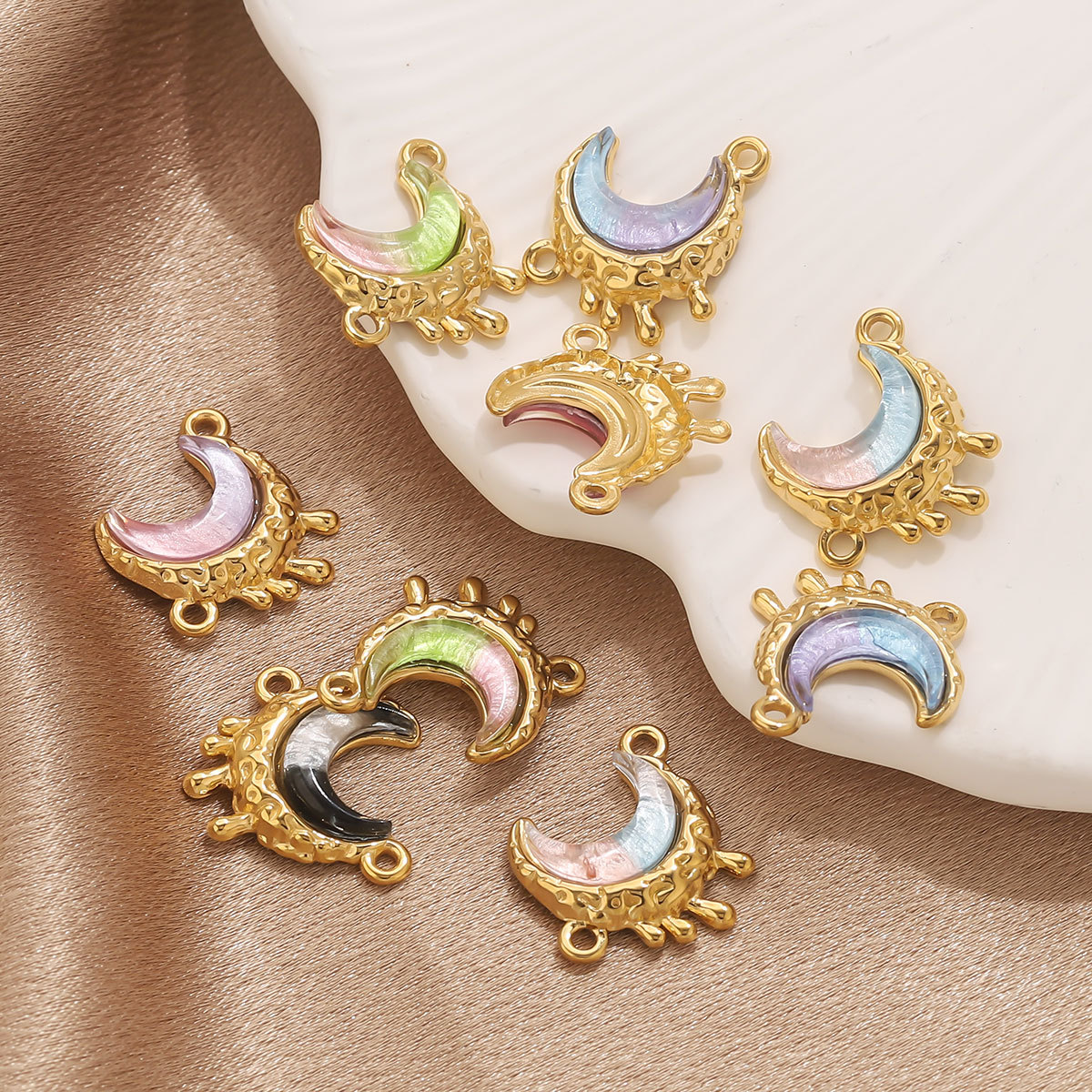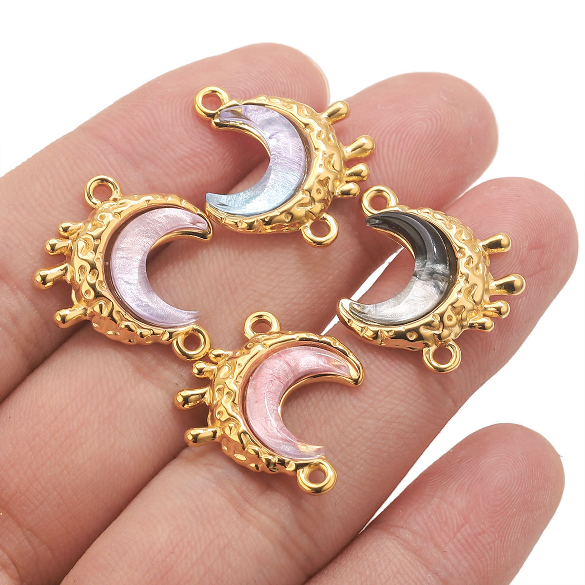 Pingente de resina, Aço inoxidável 304, with resina, Lua, cromado de cor dourada, DIY & dois furos, Mais cores pare escolha, 3PCs/Bag, vendido por Bag