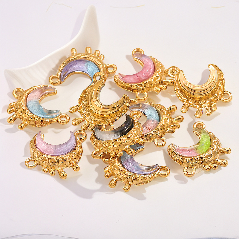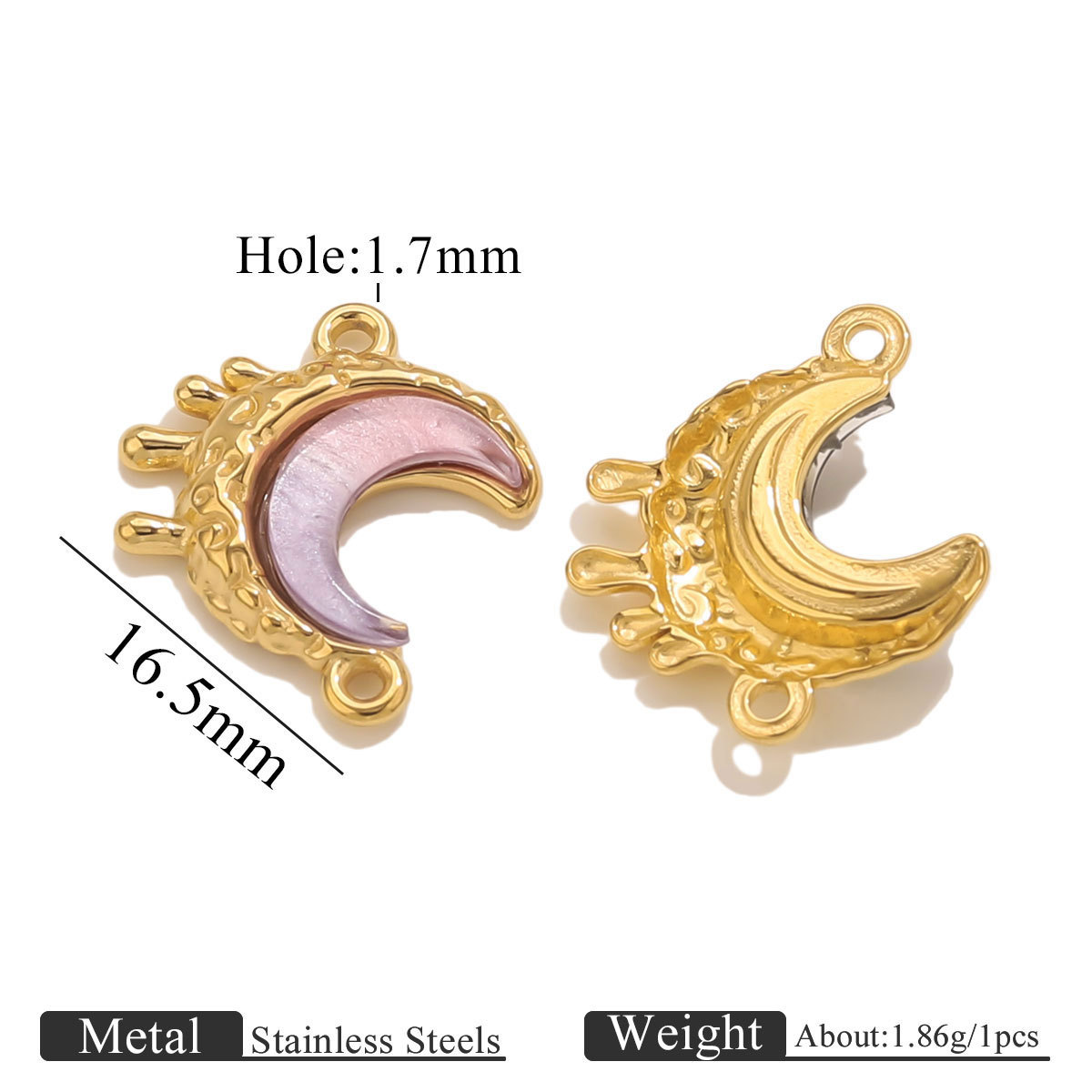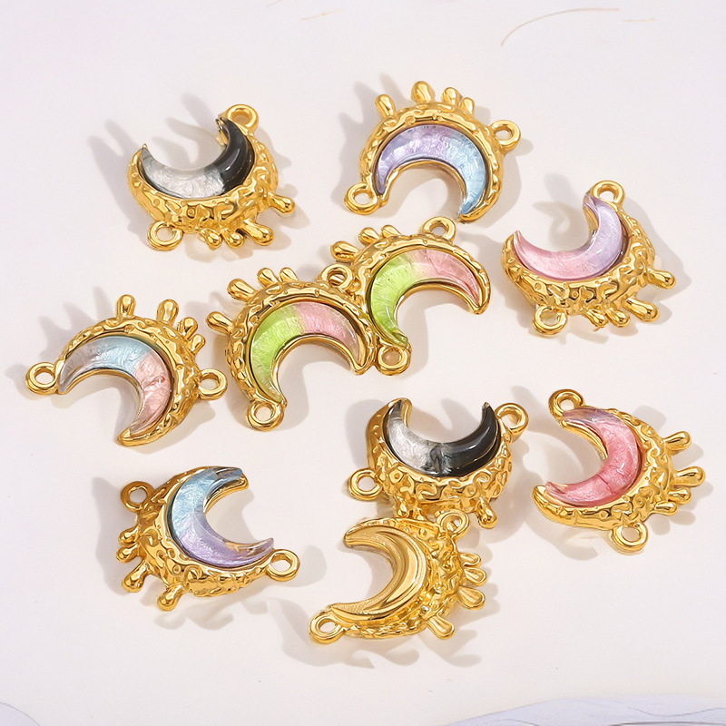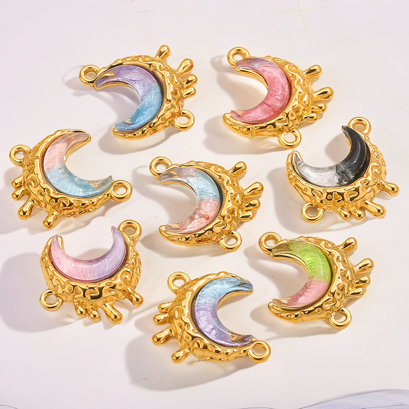 Pingente de resina, Aço inoxidável 304, with resina, Lua, cromado de cor dourada, DIY & dois furos, Mais cores pare escolha, 3PCs/Bag, vendido por Bag