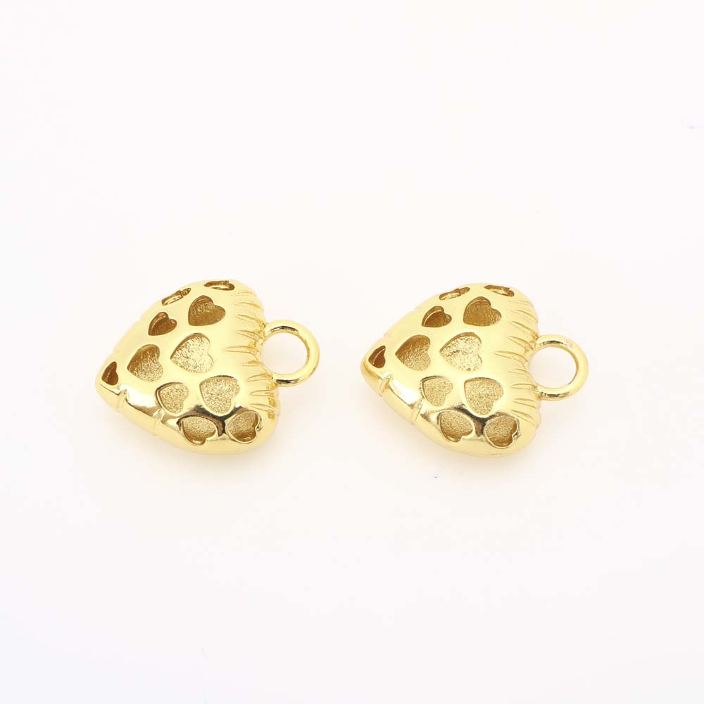 Pingentes de coração de bronze, cobre, DIY & vazio, dourado, vendido por PC