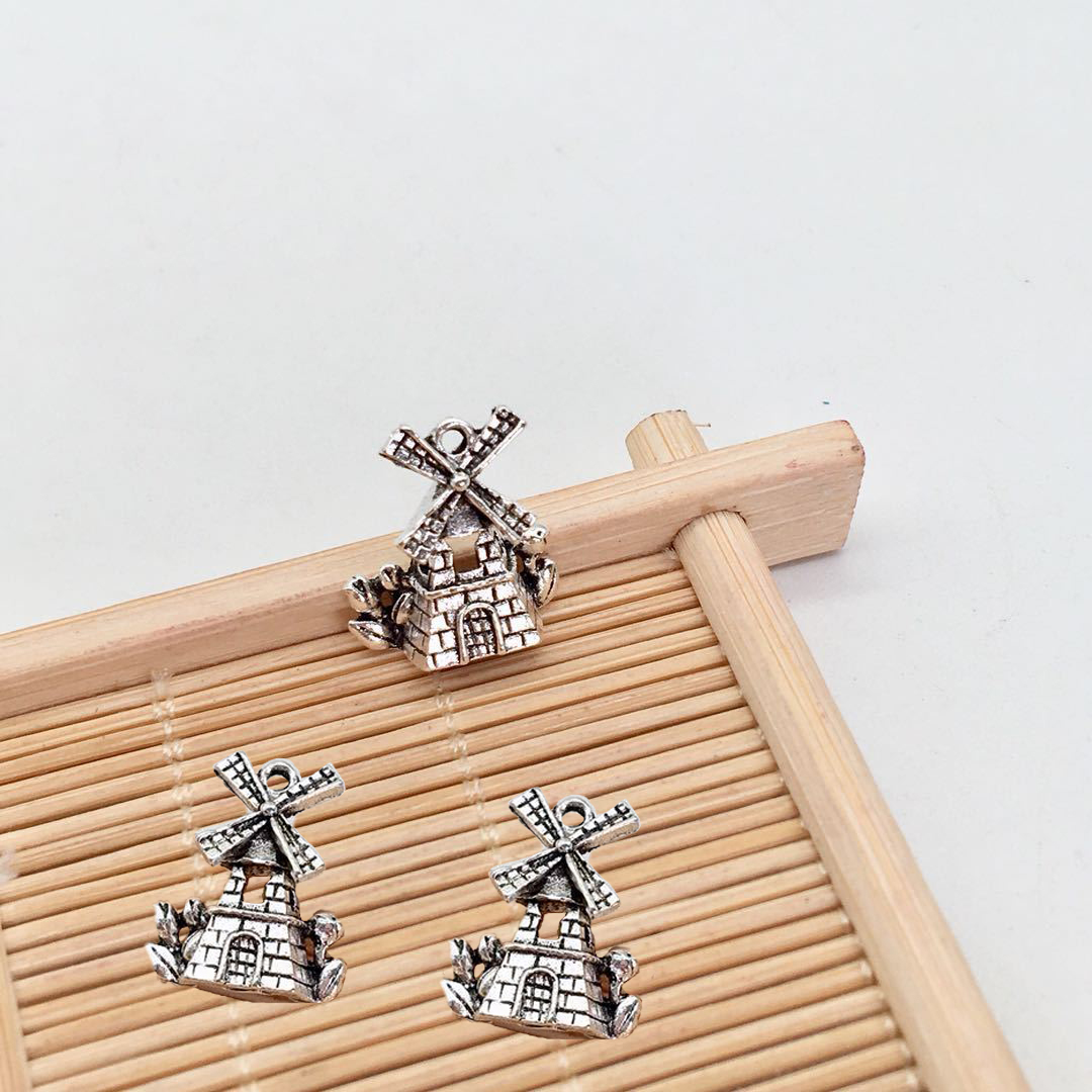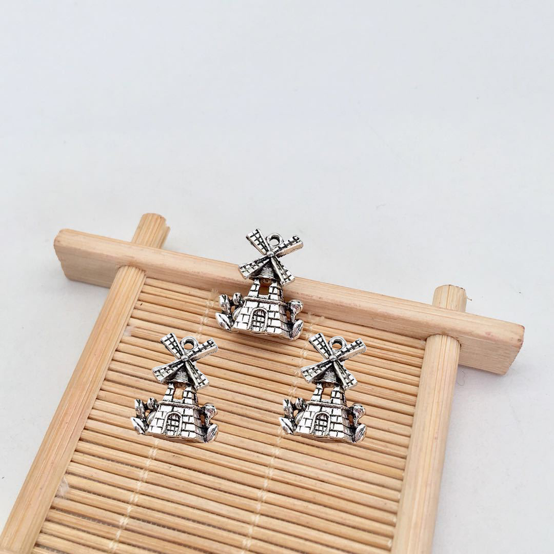 Pingentes de liga de zinco, Cata-vento, banho de cor prata antiga, DIY, 18x16mm, 100PCs/Bag, vendido por Bag