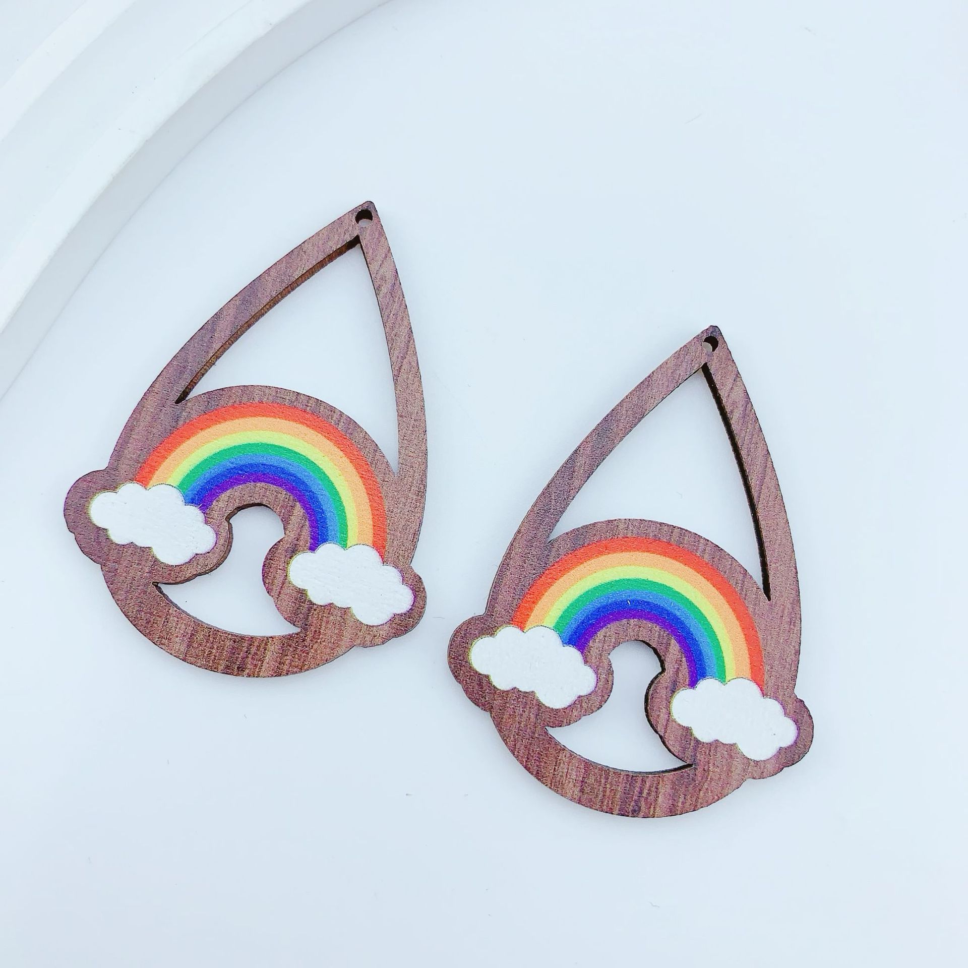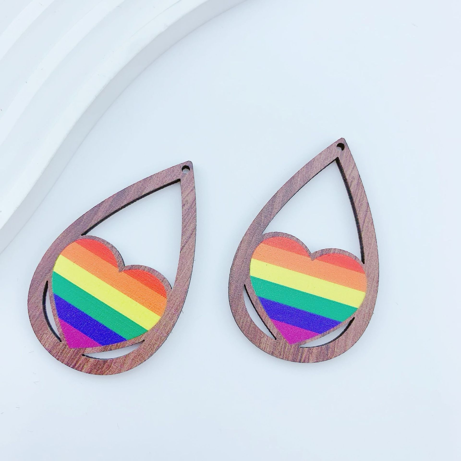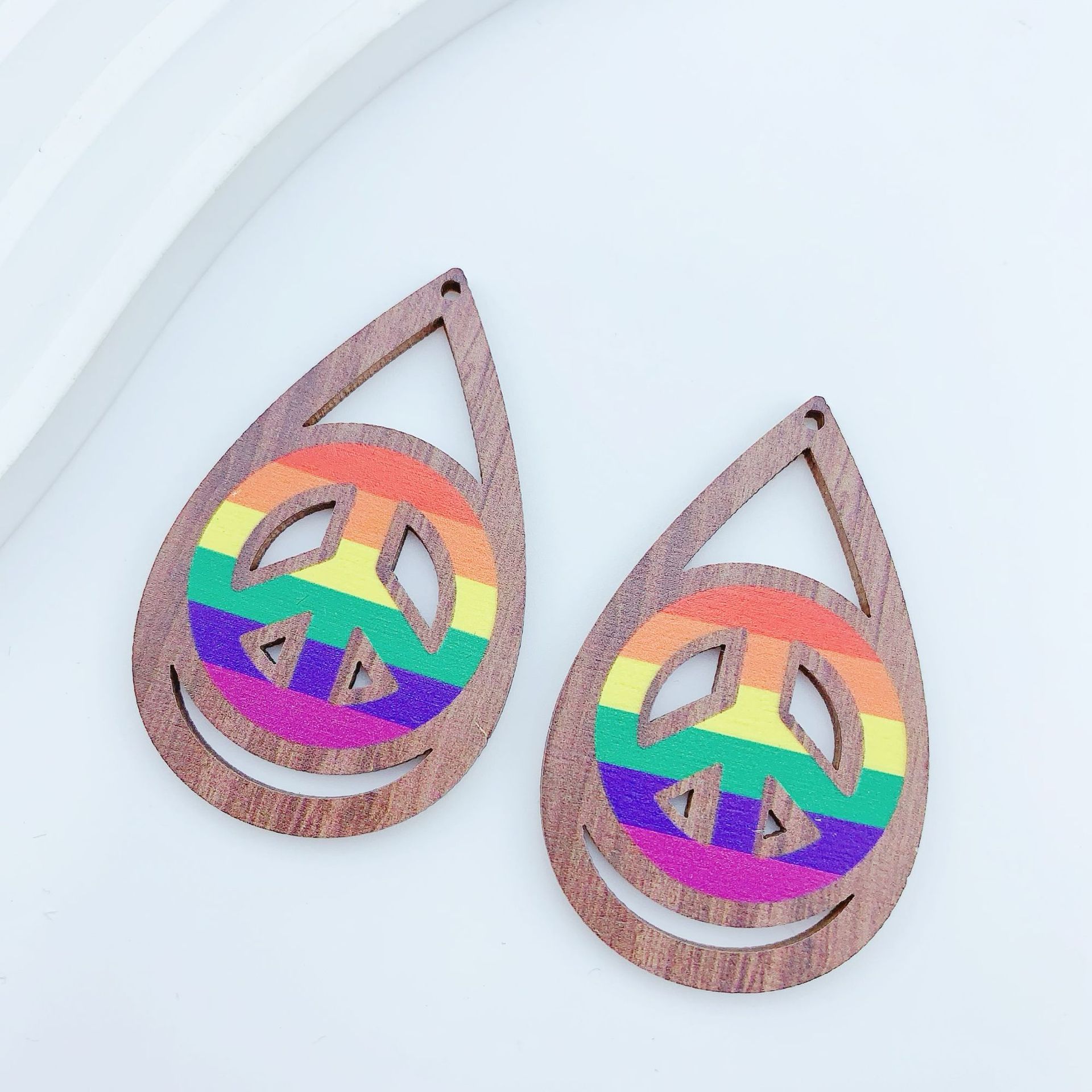 Pingentes Madeira, Lágrima, arco-íris, DIY, Mais cores pare escolha, 34x55mm, Aprox 100PCs/Bag, vendido por Bag