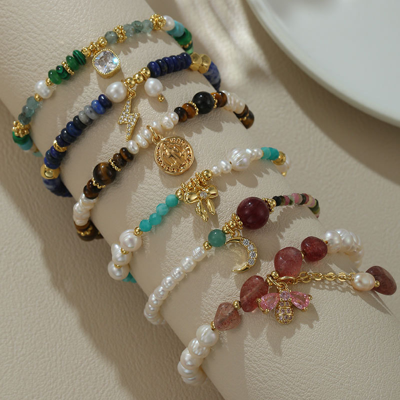 1:B4193 natural pearl rose quartz bee2:B4135 natural pearl tiger eye3:B4116 natural pearl lapis lazuli abacus4:B4130 natural pearl blue5:B4103 natural pearl gradient zircon6:B4103 natural pearl color beads moon
